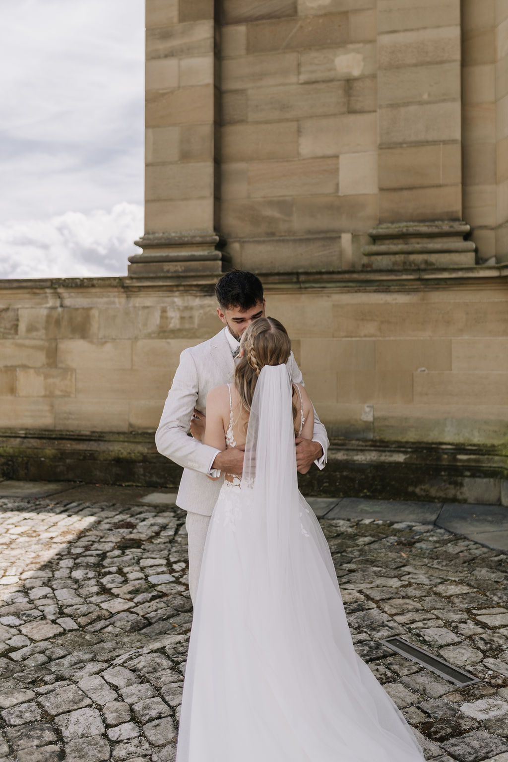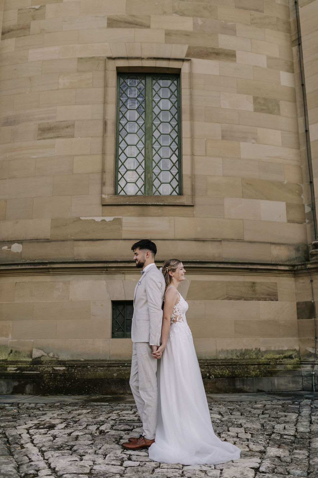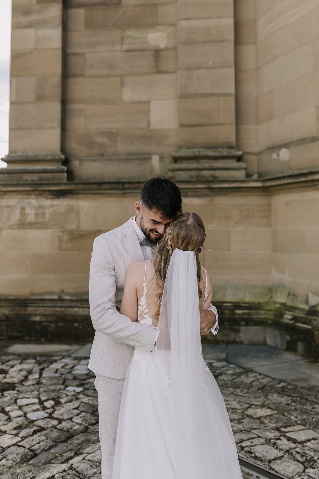 Vor der Zeremonie nahmen wir uns bewusst Zeit für einen ruhigen First Look. Abseits vom Trubel entstand ein intimer Moment nur für die beiden – voller Dankbarkeit, Vorfreude und innerer Ruhe. Es sind genau diese stillen Augenblicke, in denen spürbar wird, dass Gott bereits Teil dieser Geschichte ist.