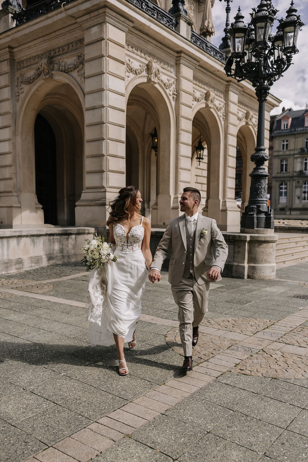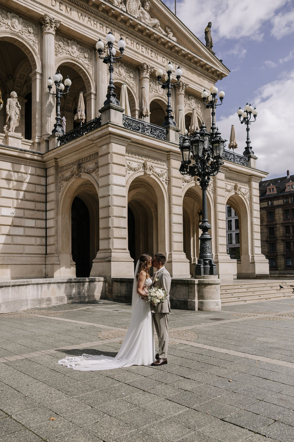 Für das Paarshooting wählten wir zwei ikonische Orte: den Palmengarten Frankfurt und die Alte Oper Frankfurt. Zwischen Palmen, historischen Fassaden und urbaner Eleganz entstanden zeitlose, helle und emotionale Bilder.