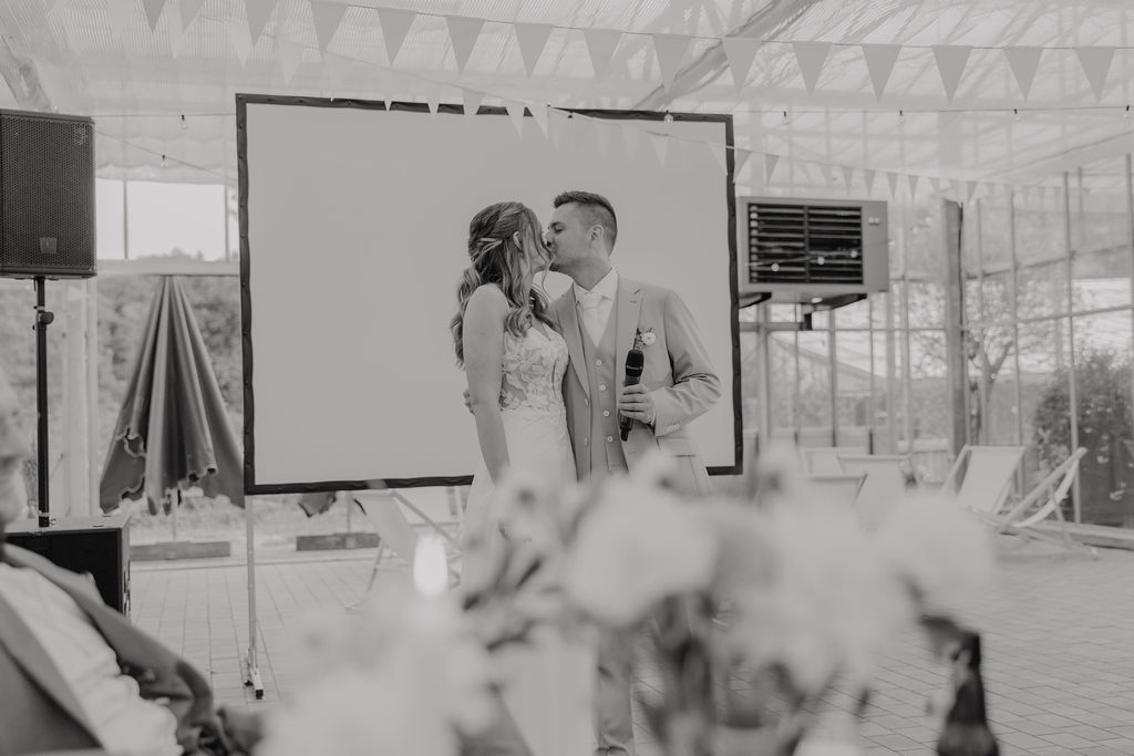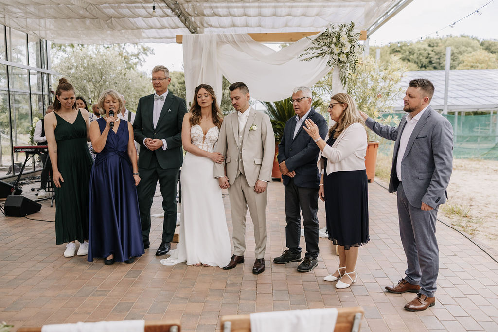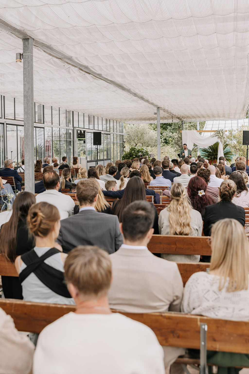 Das Gewächshaus bot eine einzigartige Kulisse für die Feier. Glas, viel Tageslicht, Pflanzen und warme Dekoelemente schufen eine moderne, gleichzeitig natürliche Atmosphäre. Gerade für christliche Hochzeiten ist so eine Location besonders schön, weil sie Leichtigkeit mit Tiefe verbindet.