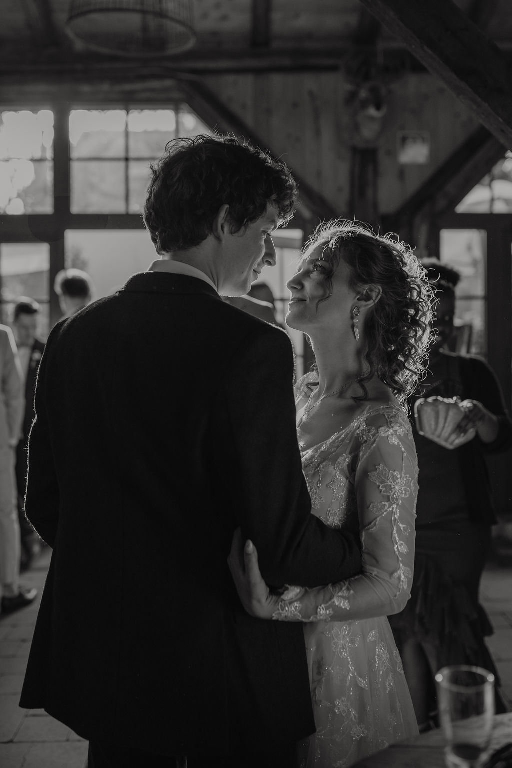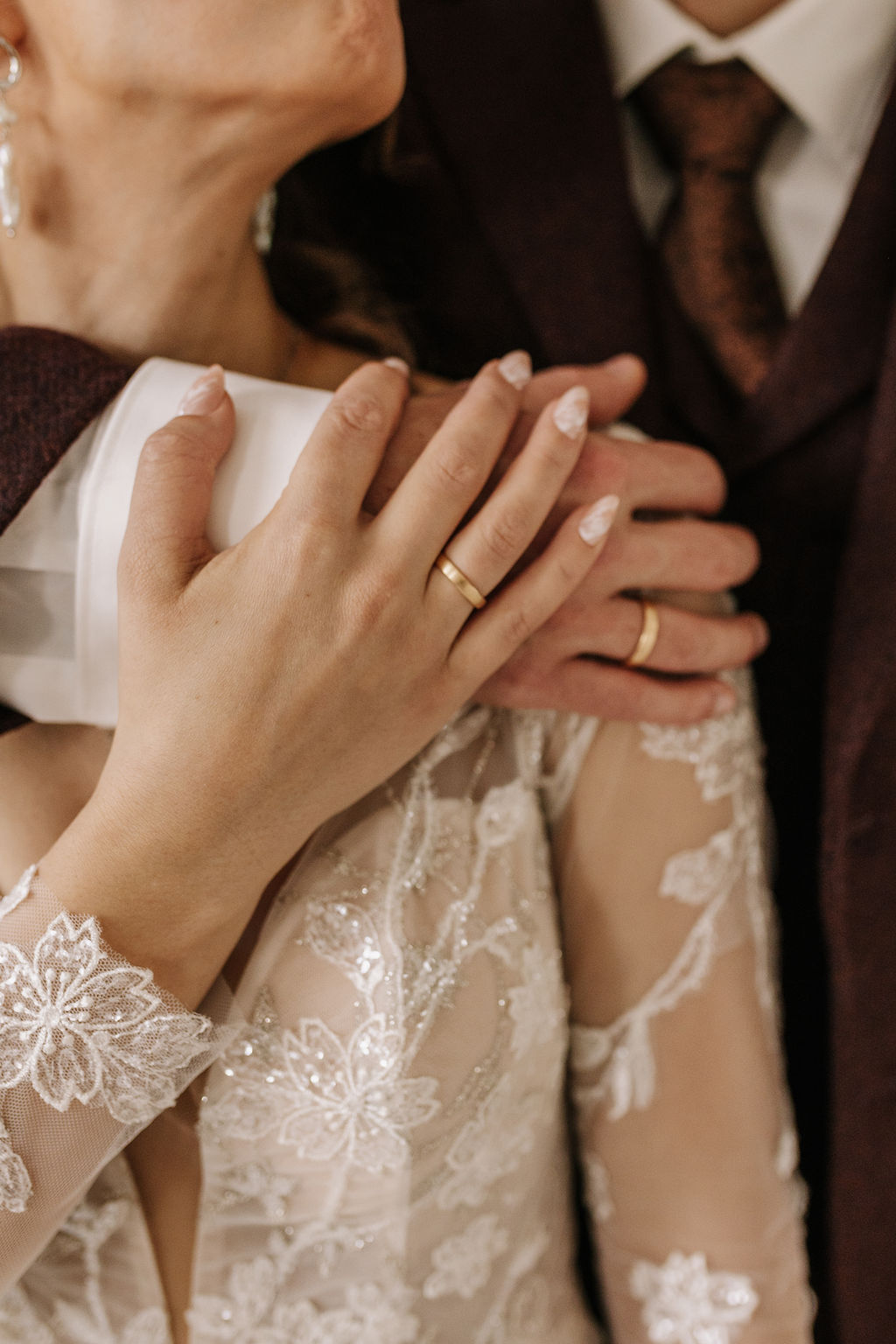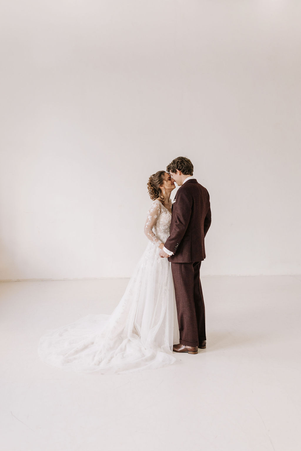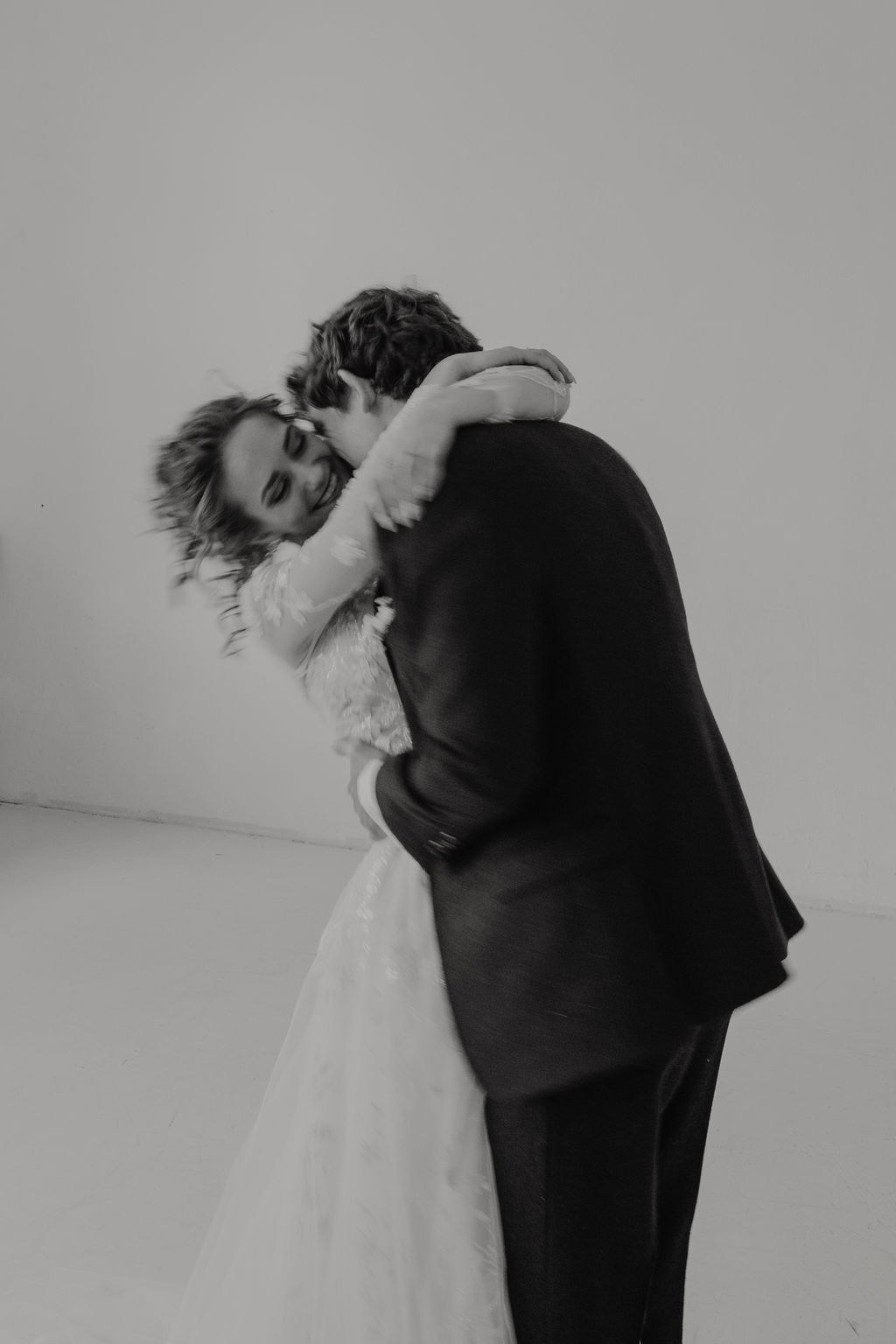 Für das First Look Shooting entschieden wir uns für das Studio The Cotton Mill in Wuppertal. Die warme, ruhige Atmosphäre des Studios bot ideale Bedingungen, um ganz ohne Zeitdruck anzukommen. Statt Kälte und Hektik entstand ein intimer Moment nur für die beiden – geschützt, konzentriert und voller Vorfreude.