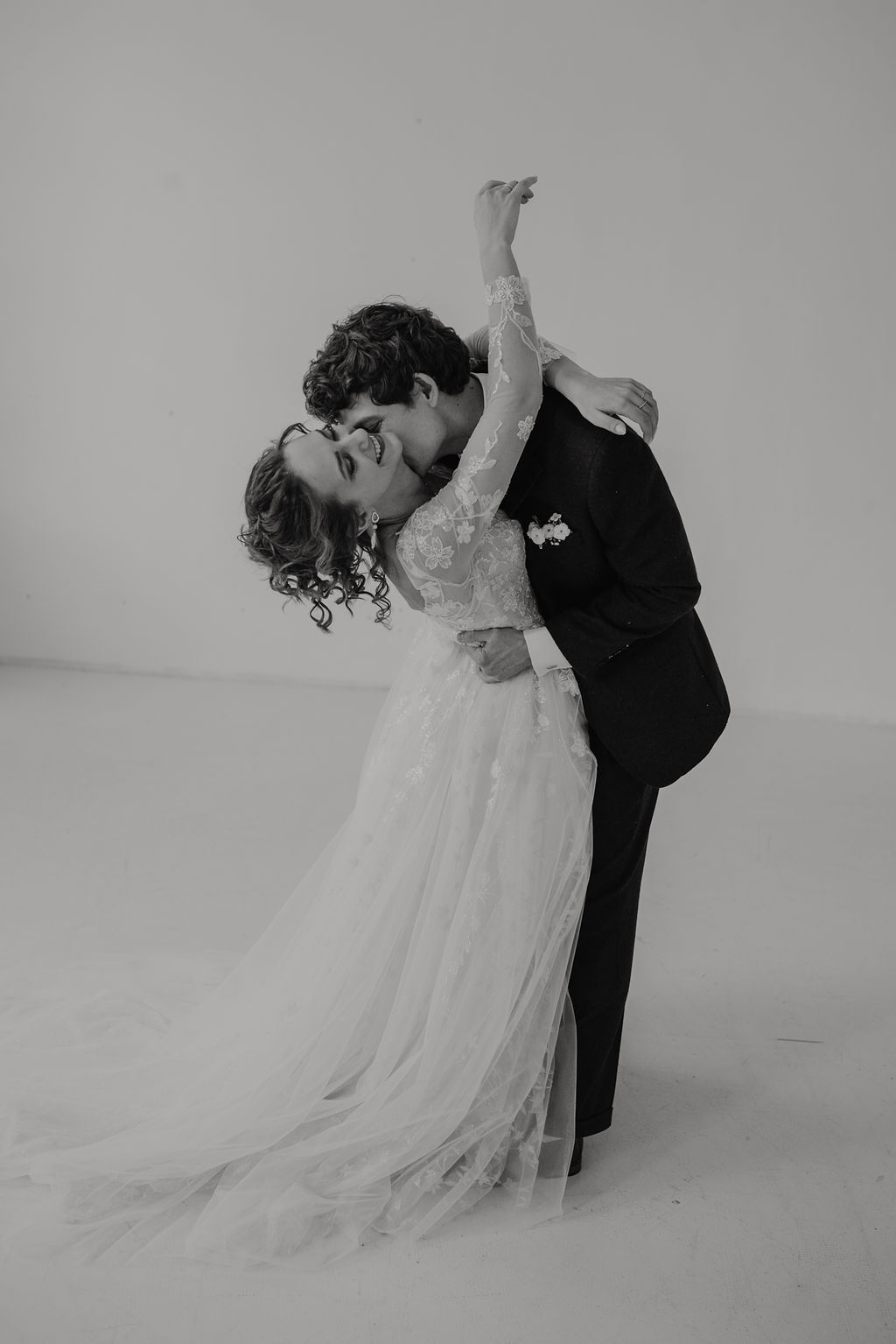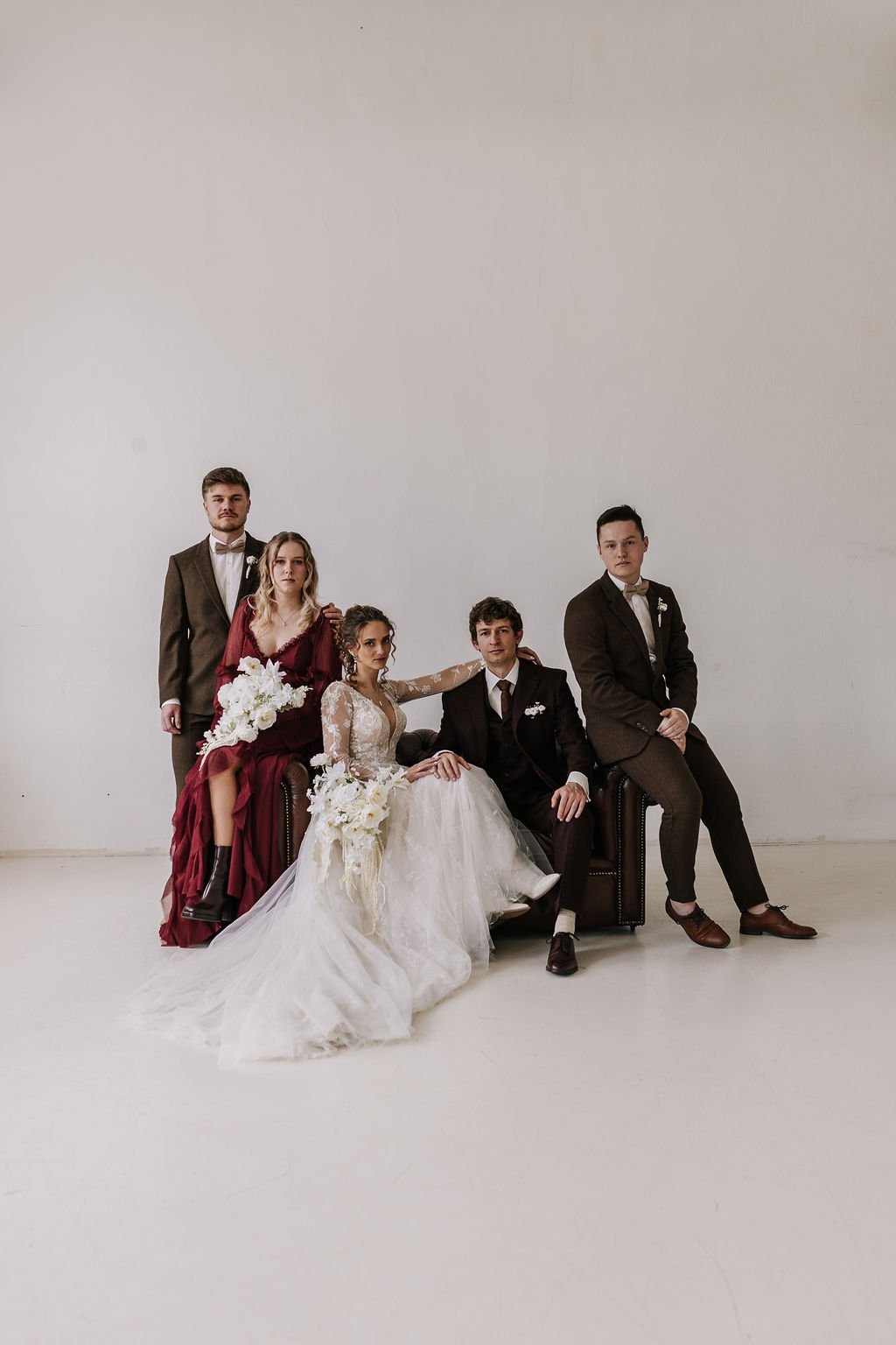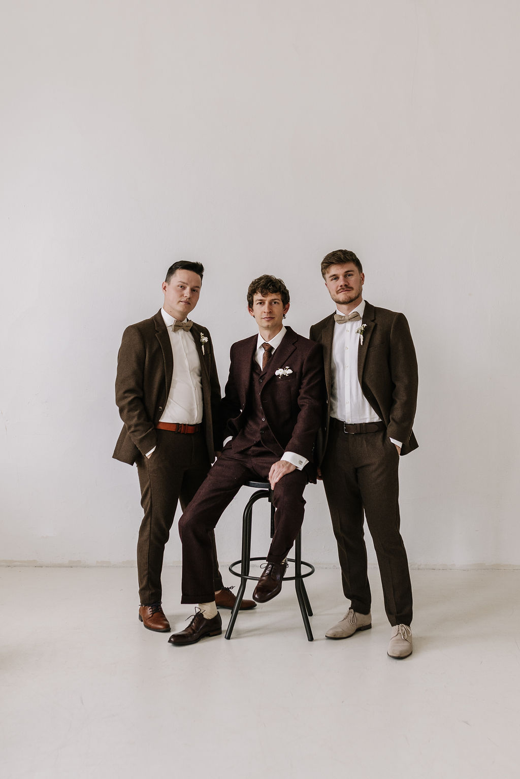 Der Look des Shootings war modern und editorial: klare Linien, reduzierte Farben und ein Fokus auf Ausdruck statt Inszenierung. Das Studio eignete sich perfekt für zeitlose Hochzeitsfotos, die nicht von Trends leben, sondern von Stimmung und Nähe. Eine Entscheidung, die den Bildern Ruhe und Tiefe verliehen hat.