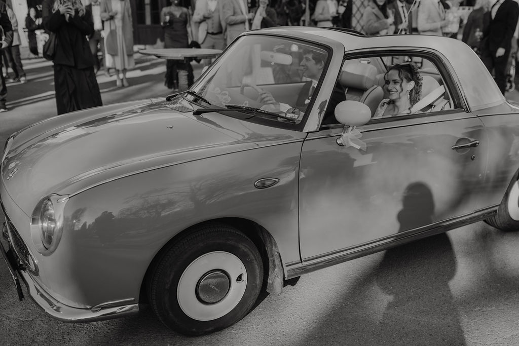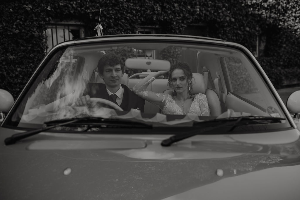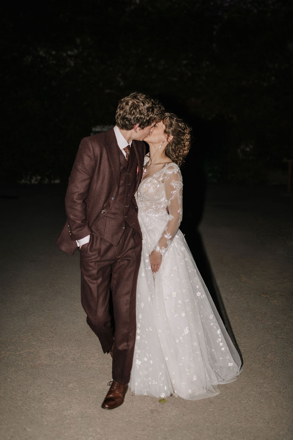 Als die Sonne langsam unterging, nutzten wir das letzte Licht für eine kleine Blitz-Session unter freiem Himmel. Diese Momente kurz vor der Nacht, wenn das Licht weicher wird und die Stimmung sich verändert, gehören zu den eindrucksvollsten eines Hochzeitstages. Echtes Lachen, Bewegung und diese besondere Ruhe, die sich über alles legt.