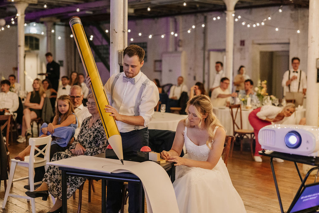 Gefeiert wurde anschließend im Industriemuseum Ennepetal – einer Hochzeitslocation mit starkem Charakter. Die industrielle Architektur, hohe Decken und historischen Elemente verleihen der Feier eine besondere Tiefe und machen sie einzigartig. Eine Hochzeit im Industriemuseum Ennepetal ist ideal für Paare, die das Besondere suchen und eine Location mit Geschichte schätzen. Die Kombination aus urbanem Industrieflair und emotionaler Feier schuf eine Atmosphäre, die modern, ehrlich und ungezwungen war. Gespräche, Lachen und echte Begegnungen standen im Mittelpunkt.