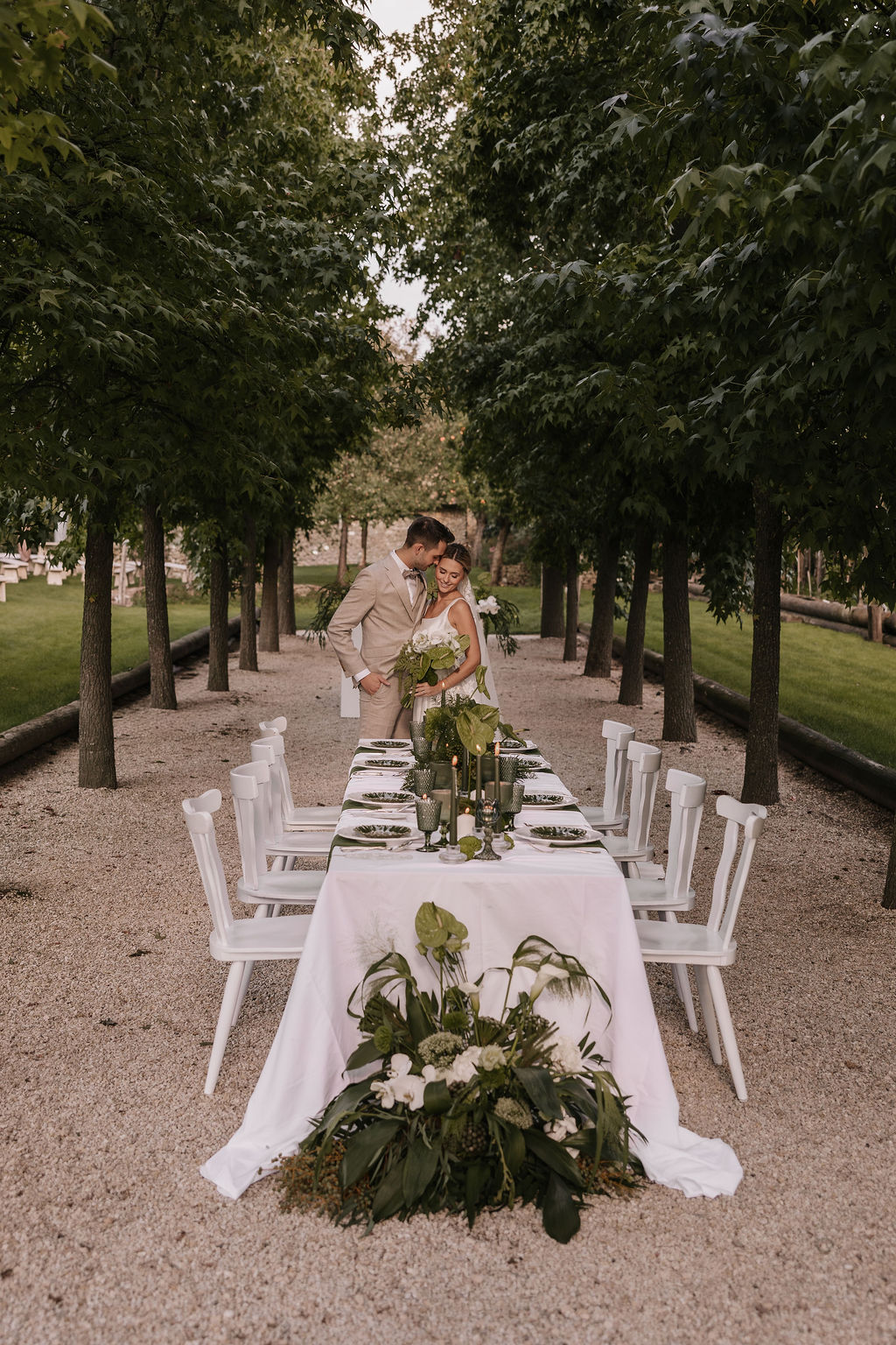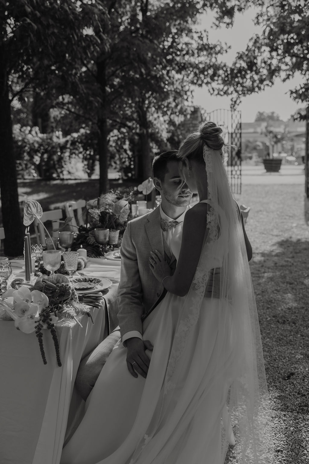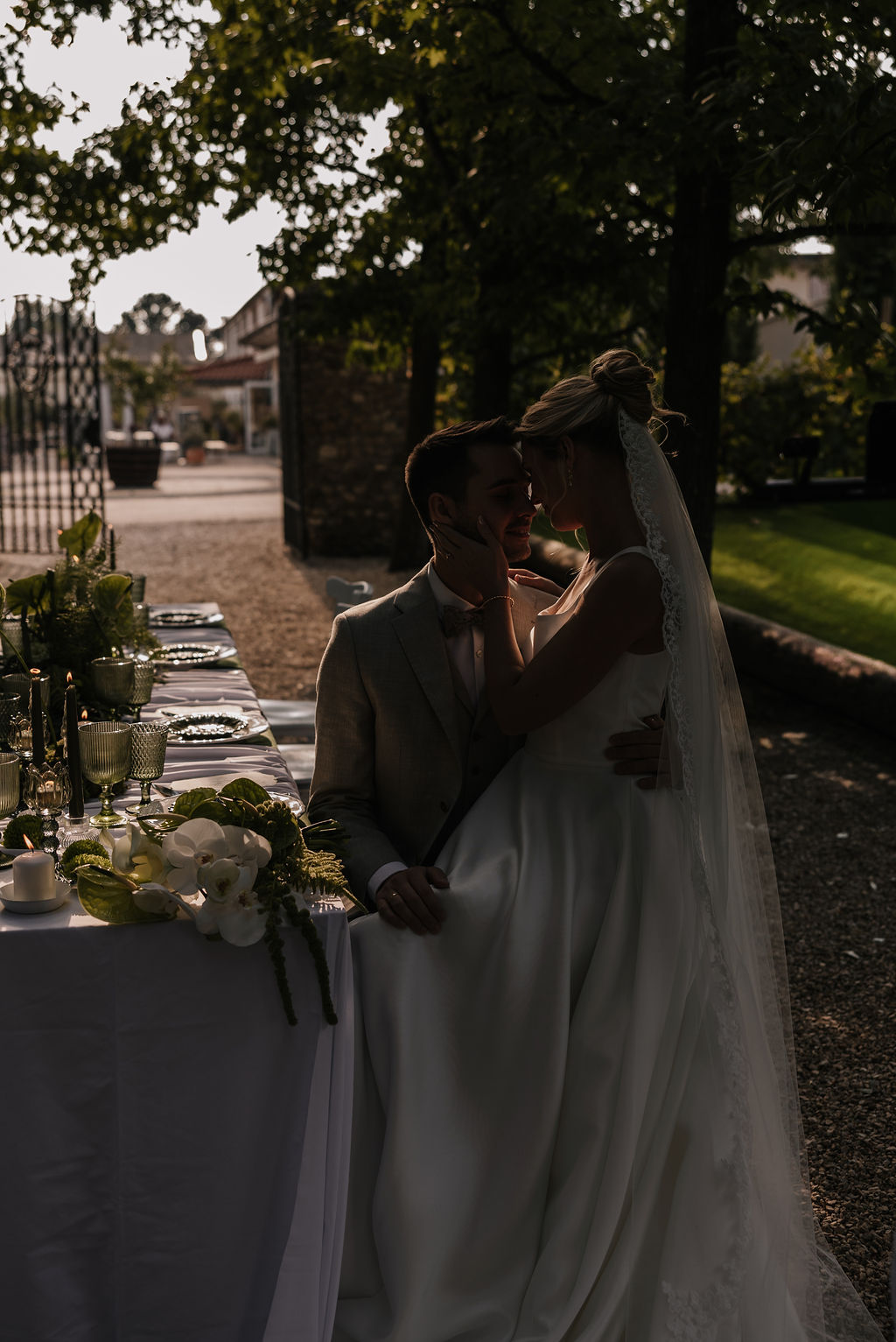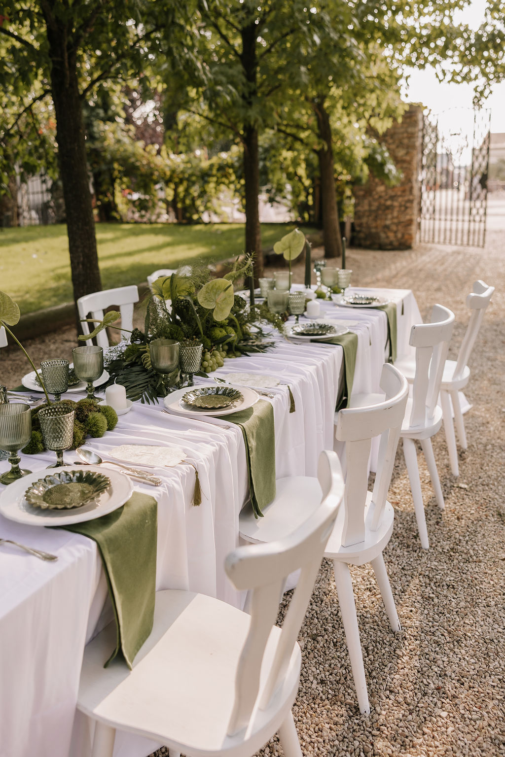 Der Garten wird schnell zum Mittelpunkt der Hochzeit. Hier entstehen Gespräche, Begegnungen und echte Momente. Die Stimmung erinnert mehr an ein italienisches Sommerfest als an eine klassische Hochzeitsfeier. Lange Tafeln, gutes Essen, Wein, Lachen – alles wirkt leicht und ungezwungen.