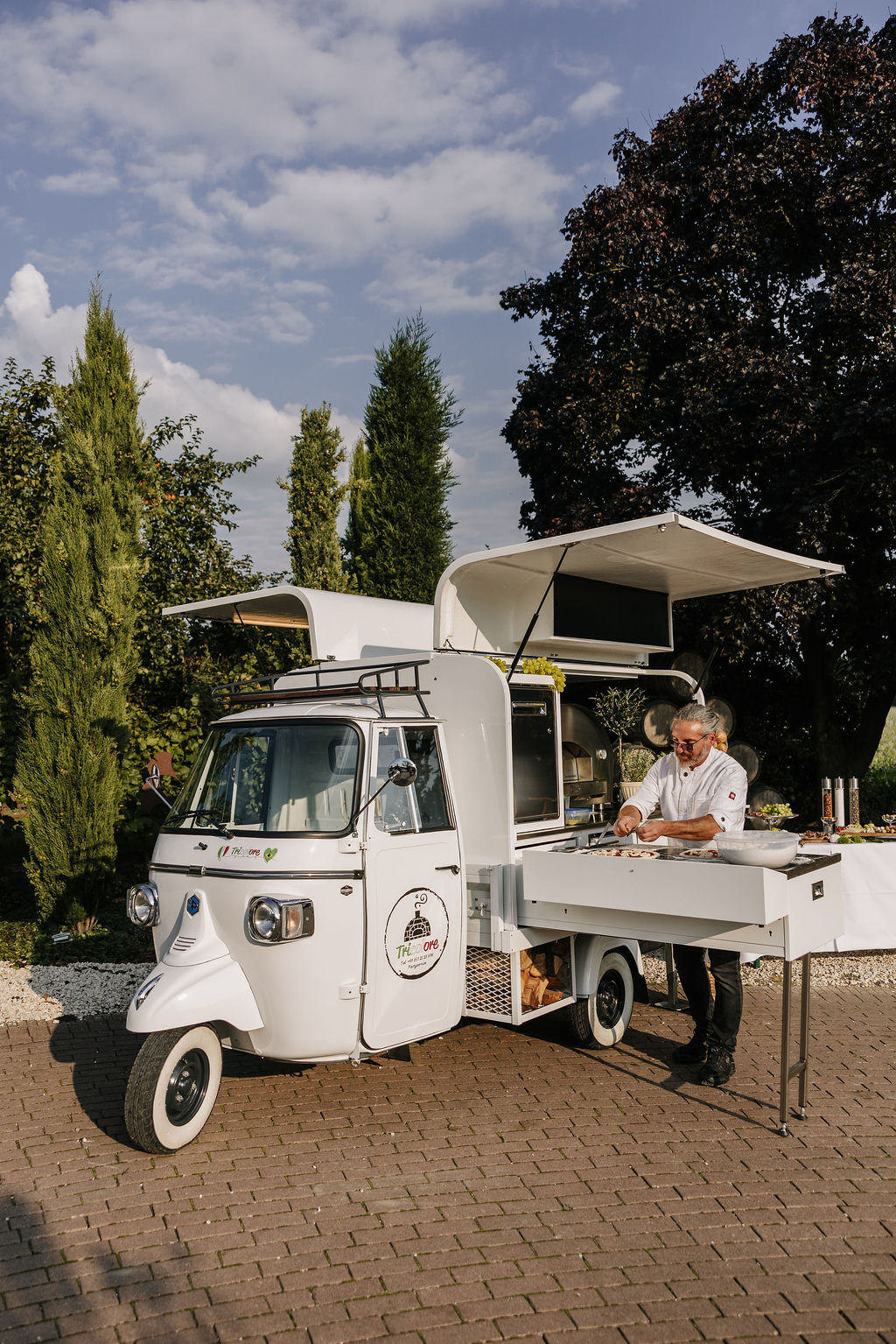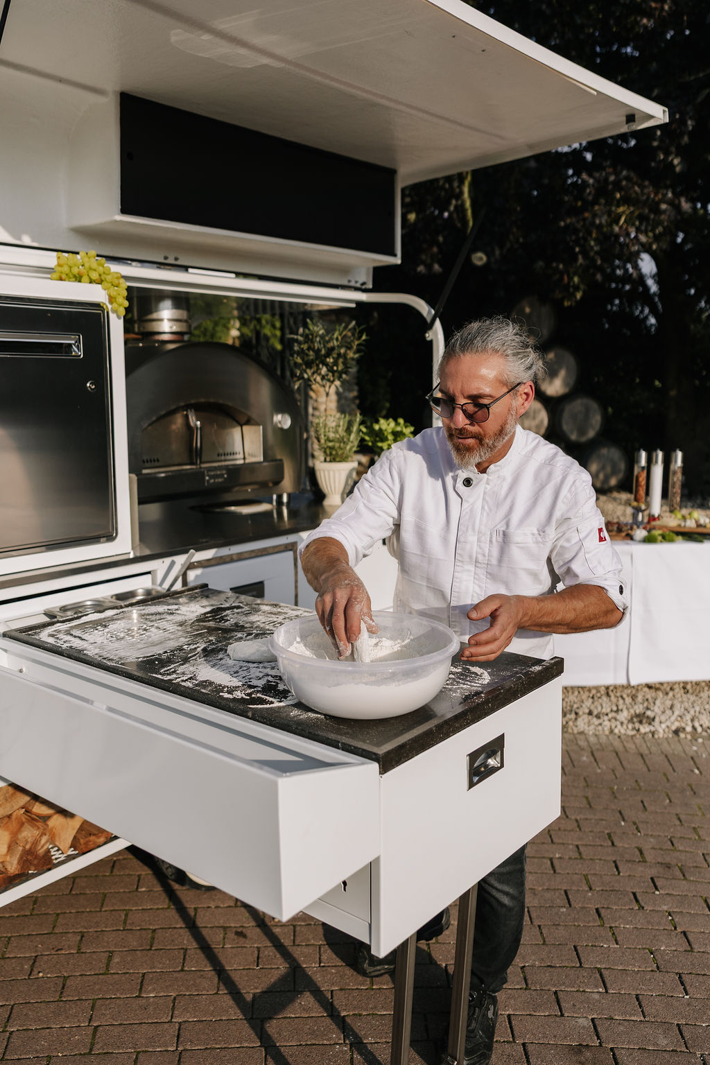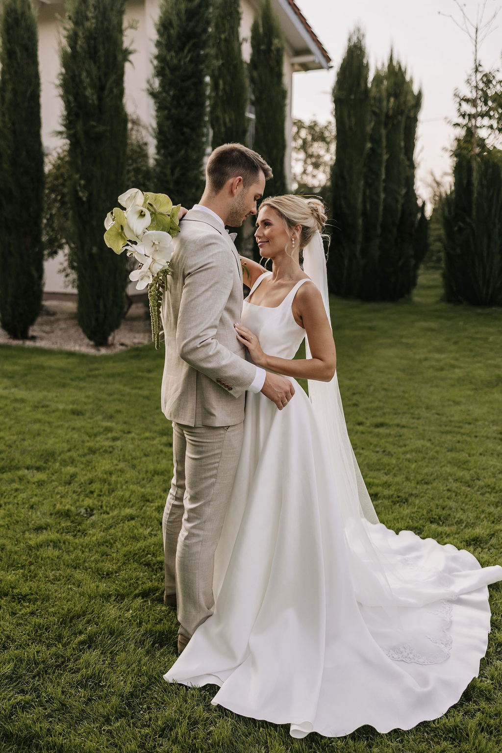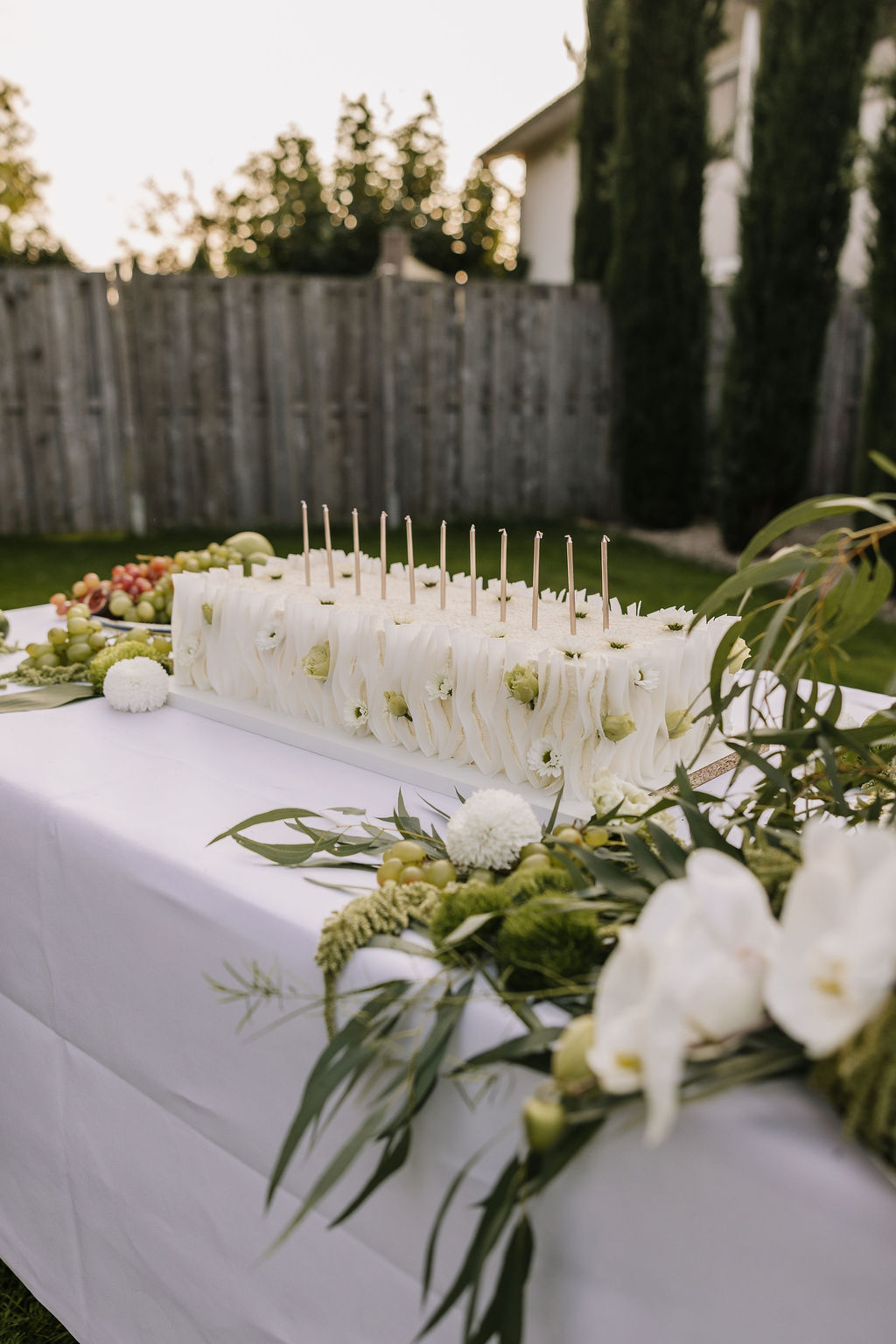 Der Garten wird schnell zum Mittelpunkt der Hochzeit. Hier entstehen Gespräche, Begegnungen und echte Momente. Die Stimmung erinnert mehr an ein italienisches Sommerfest als an eine klassische Hochzeitsfeier. Lange Tafeln, gutes Essen, Wein, Lachen – alles wirkt leicht und ungezwungen.