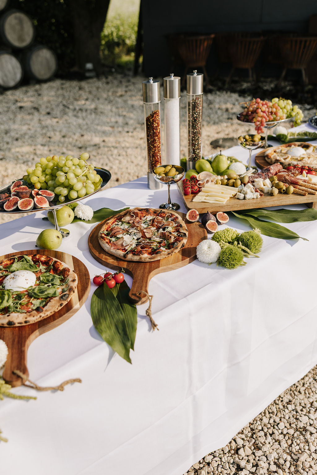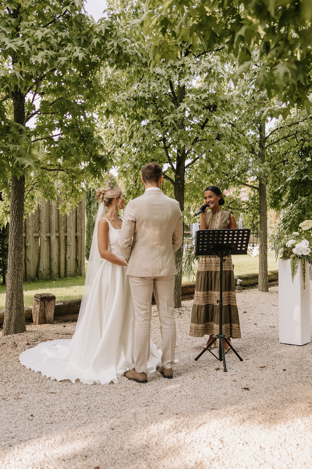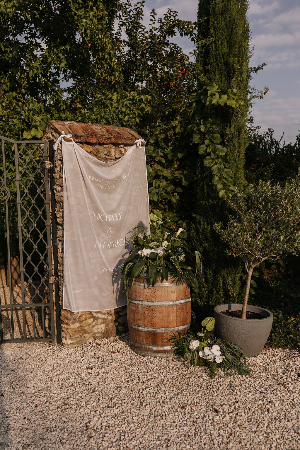 Das Gelände verbindet rustikalen Charme mit mediterraner Eleganz. Nichts wirkt inszeniert oder überladen, alles fühlt sich natürlich an. Besonders schön ist, dass Trauung, Empfang und Feier an einem Ort stattfinden können. Der Tag darf fließen, ohne Ortswechsel, ohne Zeitdruck. Genau das schafft eine entspannte Atmosphäre – für das Paar und für alle Gäste.