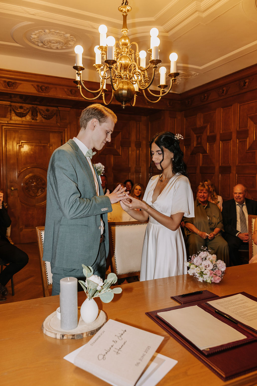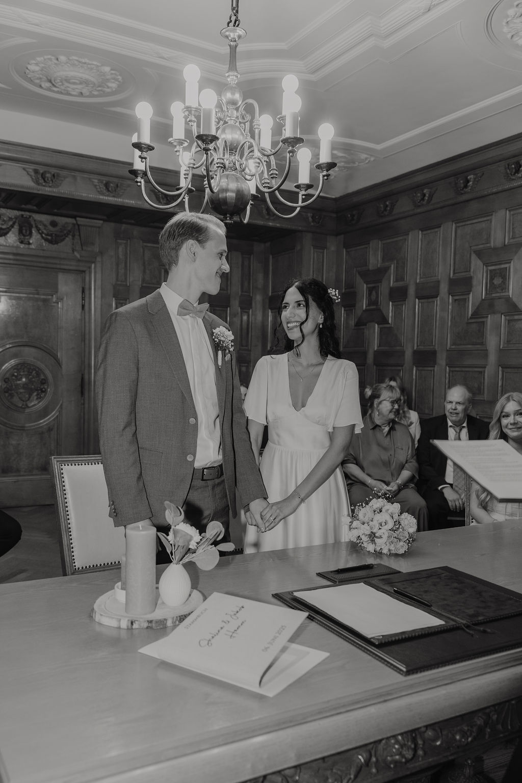 Die anschließende standesamtliche Trauung im Historischen Rathaus war emotional, persönlich und sehr nah. Gerade bei standesamtlichen Hochzeiten sind es oft die kleinen Gesten und leisen Augenblicke, die den Tag prägen. Diese Momente entstehen ungestellt und werden am schönsten festgehalten, wenn sie nicht unterbrochen oder inszeniert werden.