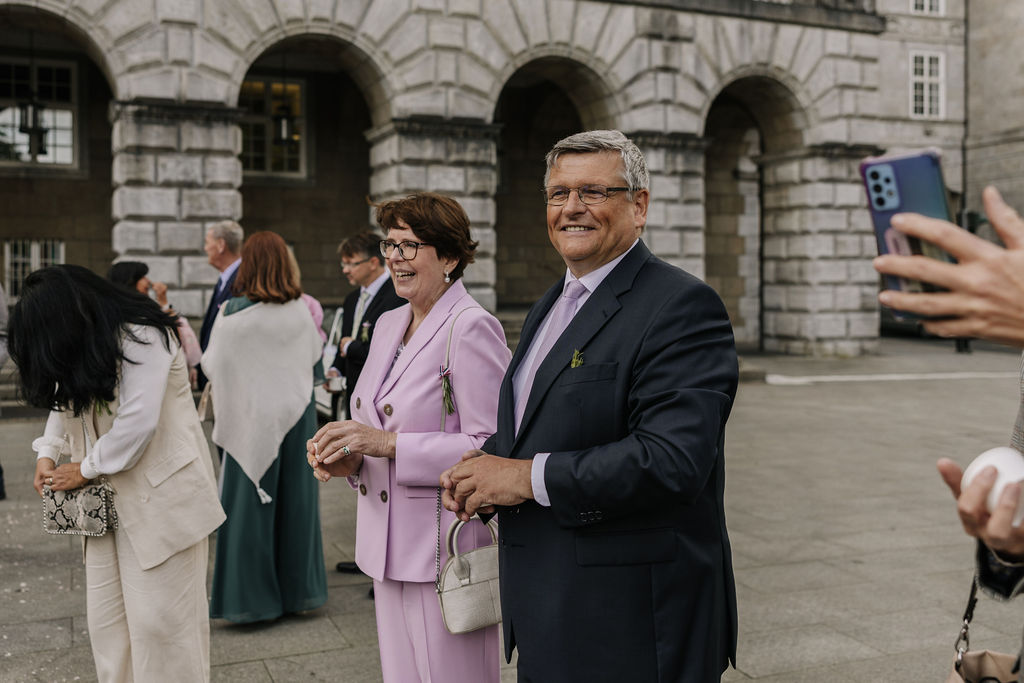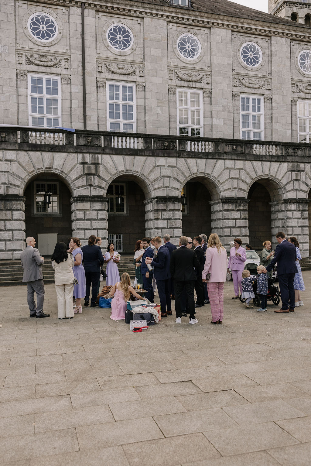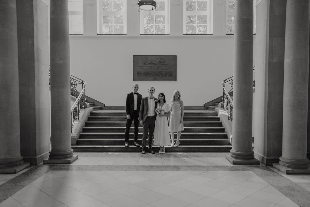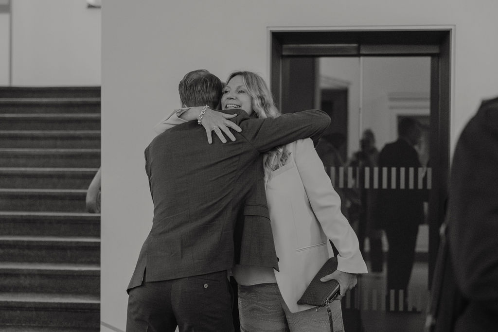 Der Sektempfang fand direkt auf dem Vorplatz des Historischen Rathauses statt. Unter freiem Himmel entstand eine entspannte, fast sommerliche Atmosphäre. Gespräche, Umarmungen und herzliche Glückwünsche bestimmten diesen Teil des Tages. Auch die Gruppenfotos ließen sich hier ganz natürlich und ohne Hektik umsetzen.