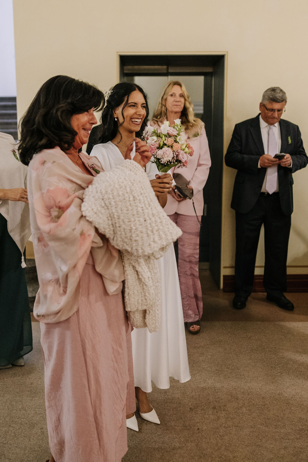 Nach der Trauung sammelten sich Familie und Freunde auf dem Vorplatz, während Salina und Jakob im Oldtimer vorfuhren. Diese Übergänge gehören zu den emotionalsten Momenten einer standesamtlichen Hochzeit – ungeplant, lebendig und voller Nähe.