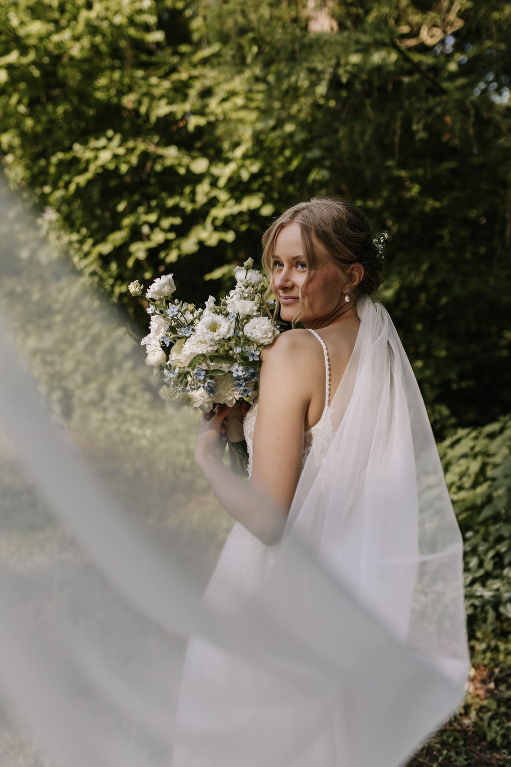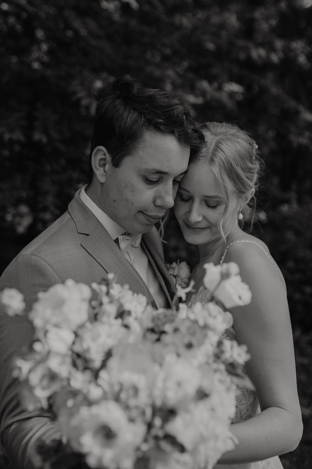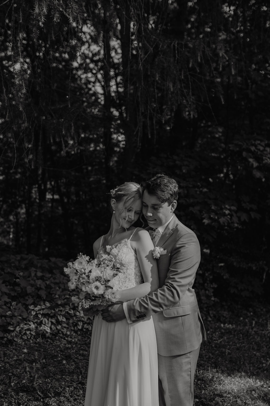 Für das Fotoshooting nutzten wir den idyllischen Wald bei der Eventlocation Oefter Wald. Die Bäume und das sanfte Licht des frühen Abends schufen eine romantische Atmosphäre, die die Liebe zwischen Celina und Louis perfekt widerspiegelte.