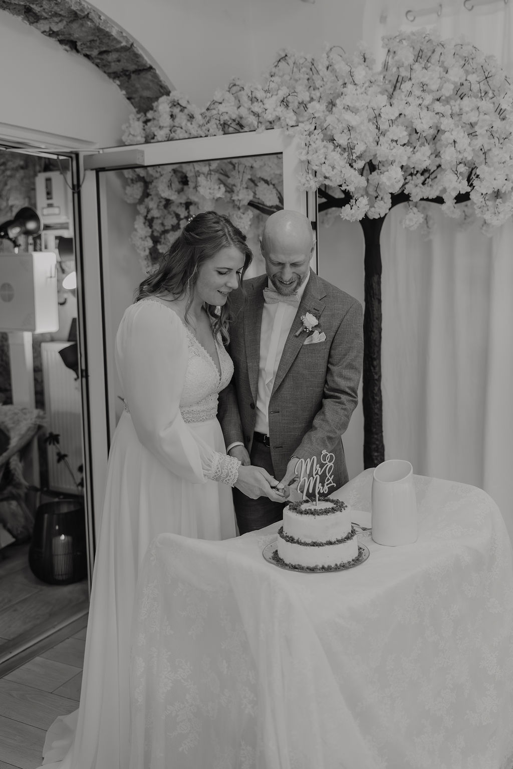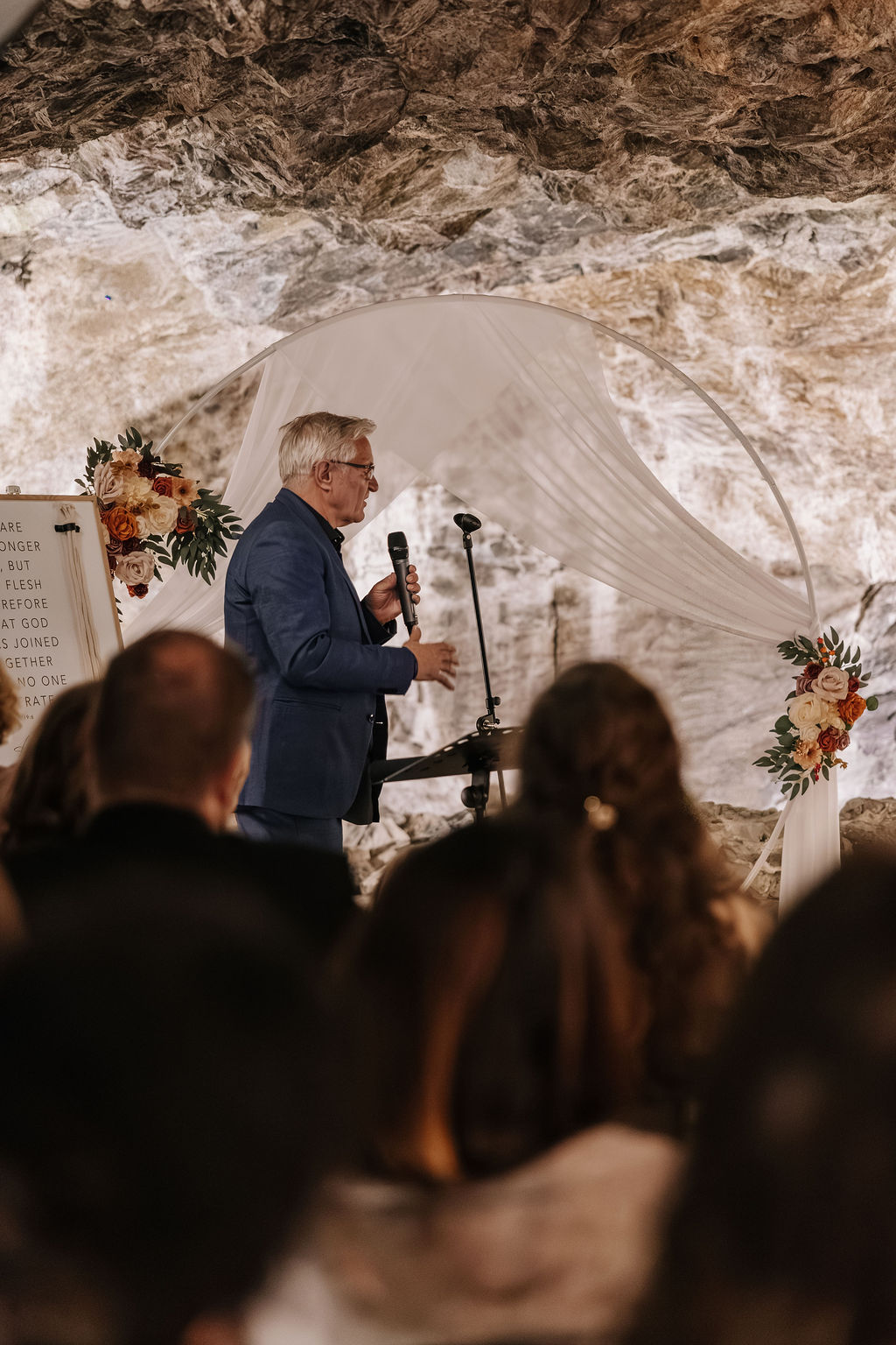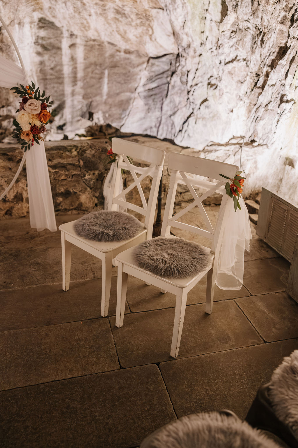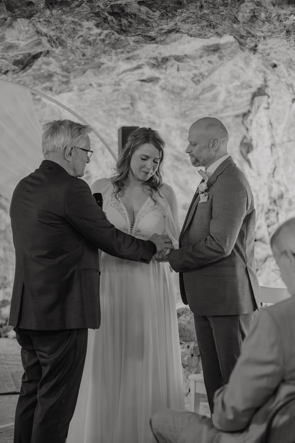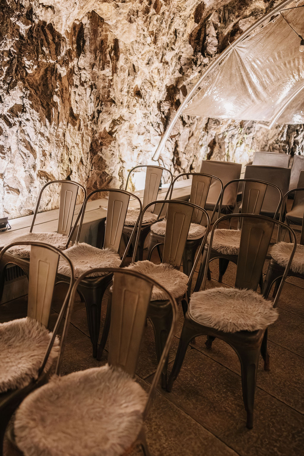 Die Trauung fand tatsächlich in der Höhle der Location statt – eine Kulisse, die man so nur selten erlebt. Die warme Beleuchtung, die natürliche Steinstruktur und die intime Atmosphäre machten diesen Moment unglaublich emotional. Besonders für eine Herbsthochzeit oder Winterhochzeit passt diese Stimmung perfekt: gemütlich, romantisch und gleichzeitig außergewöhnlich.