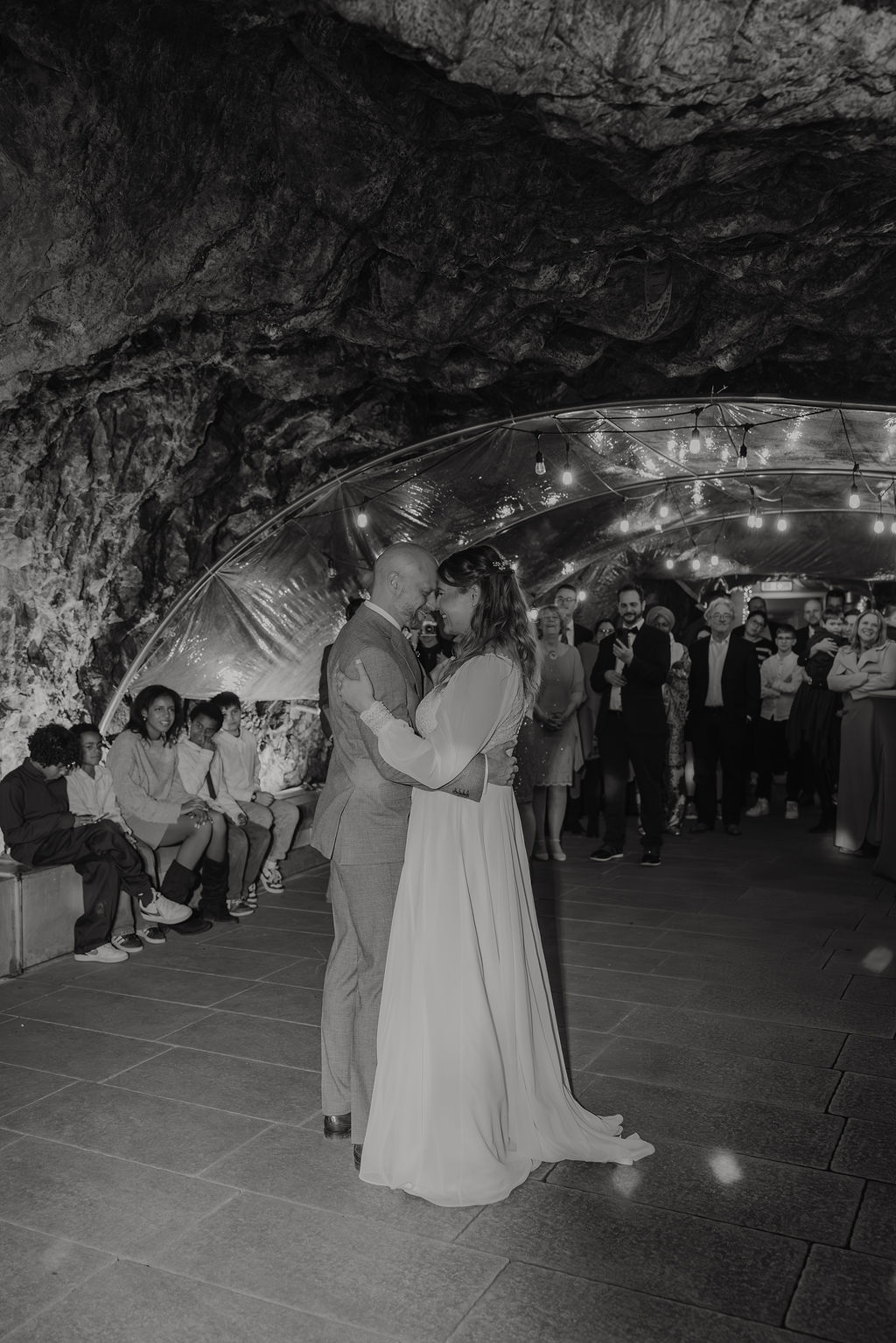 Auch am Abend ging es für besondere Momente noch einmal zurück in die Höhle. Dort fand später der First Dance statt, bevor die Feier in eine ausgelassene Party überging. Die Kombination aus natürlicher Höhle und moderner Hochzeitsfeier sorgte für eine ganz besondere Stimmung.