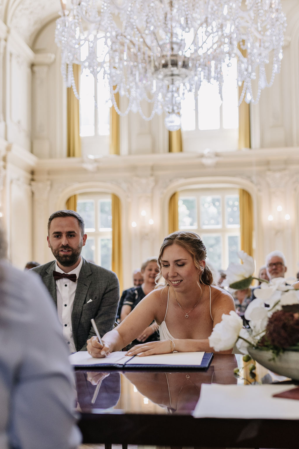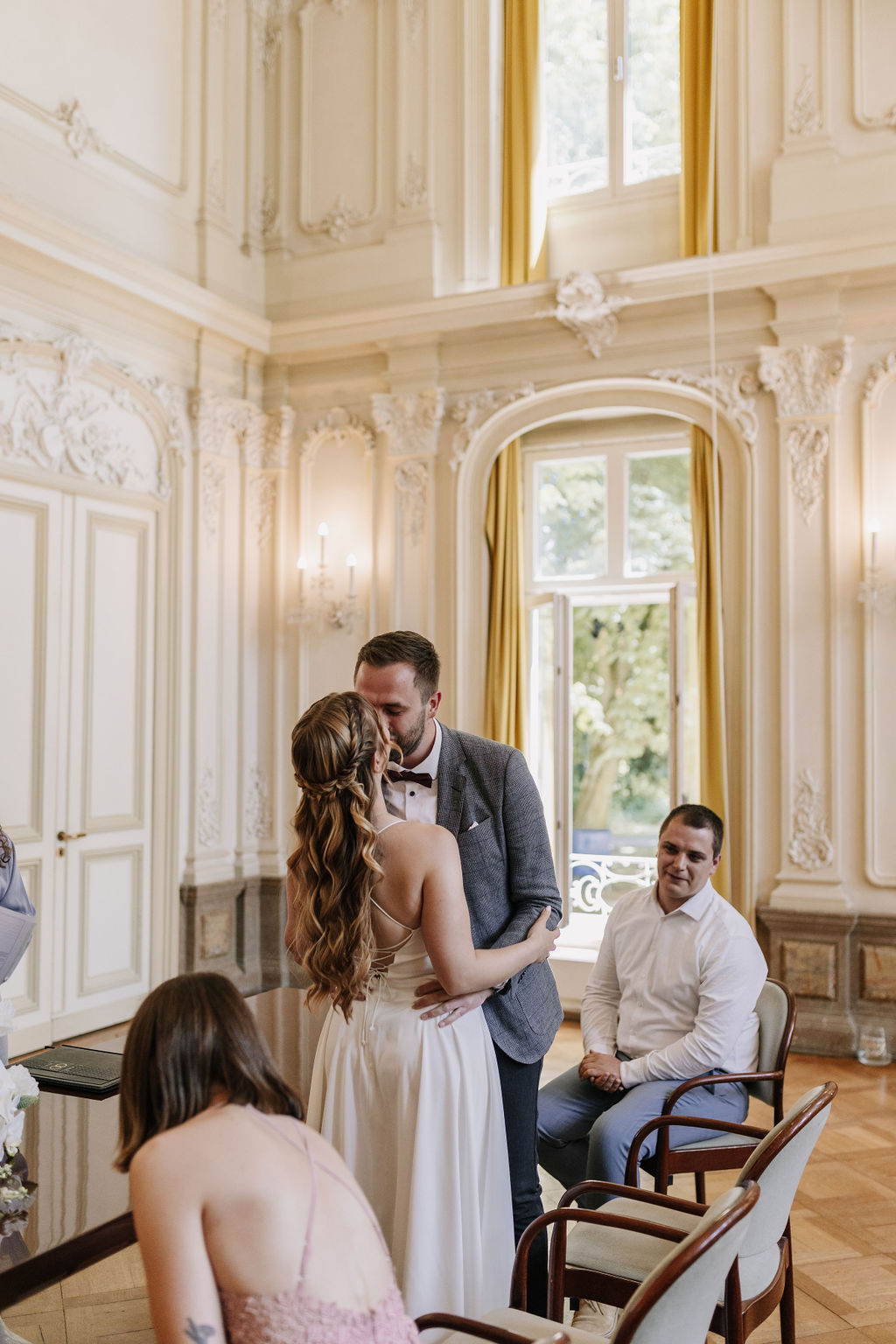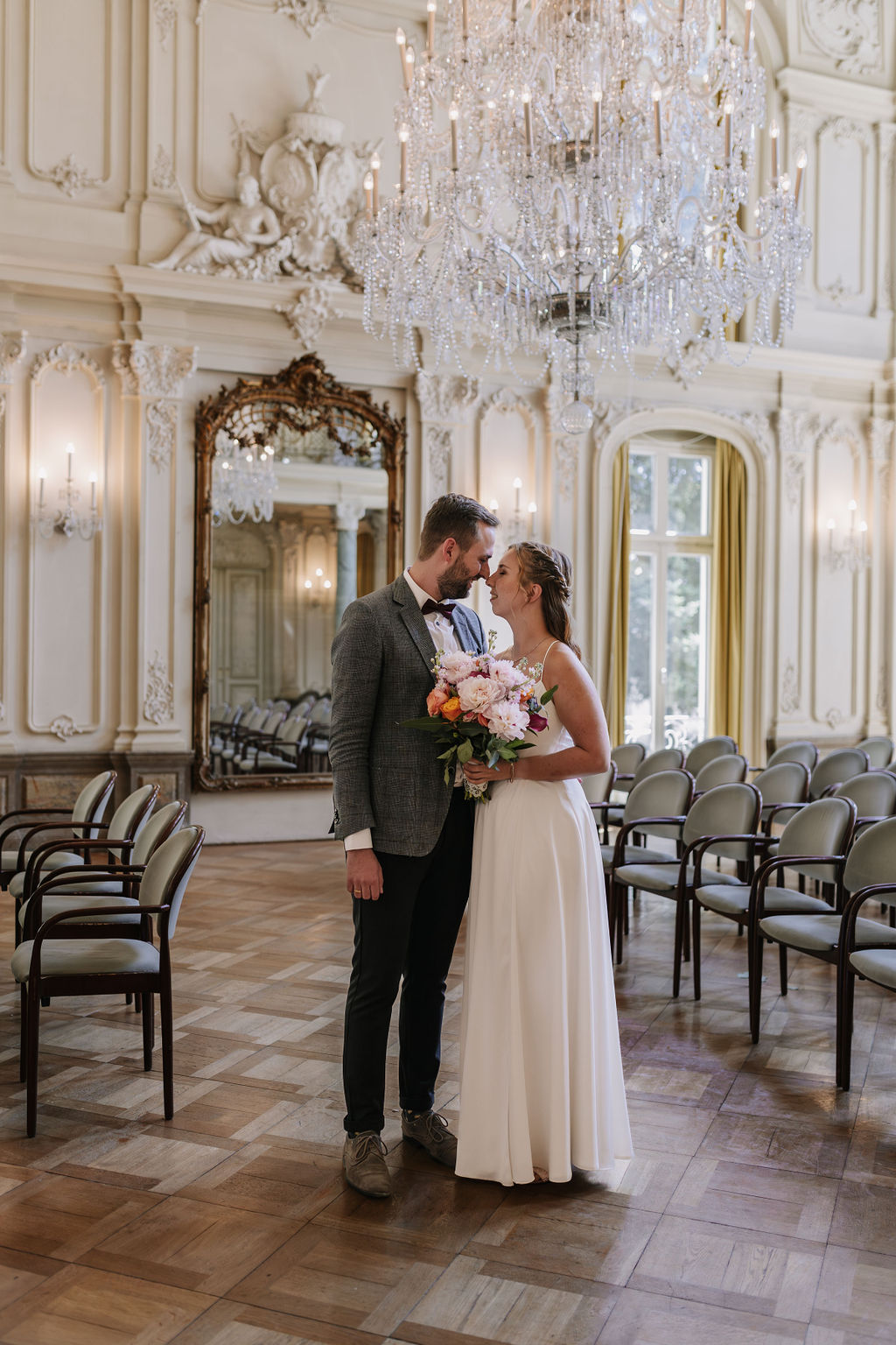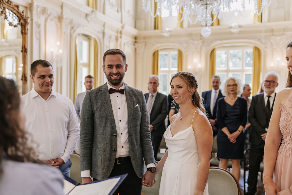 Das Schloss Morsbroich ist eine beeindruckende Kulisse für eine standesamtliche Trauung. Der Trausaal ist lichtdurchflutet, elegant und architektonisch einfach traumhaft schön. Hohe Decken, stilvolle Details und das besondere Ambiente verleihen der Zeremonie eine festliche Atmosphäre, die weit über eine klassische Rathaus-Trauung hinausgeht.