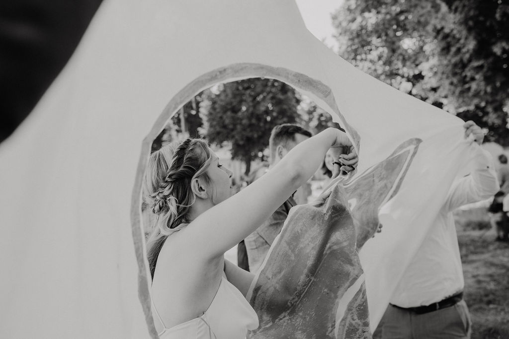 Franzi und Fabian gaben sich hier im engsten Kreis mit rund 30 Gästen das Ja-Wort – eine perfekte Größe für eine persönliche, intime und gleichzeitig festliche Trauung. Man spürte die Verbundenheit im Raum, das Lächeln der Familie und die Vorfreude auf alles, was kommt.
