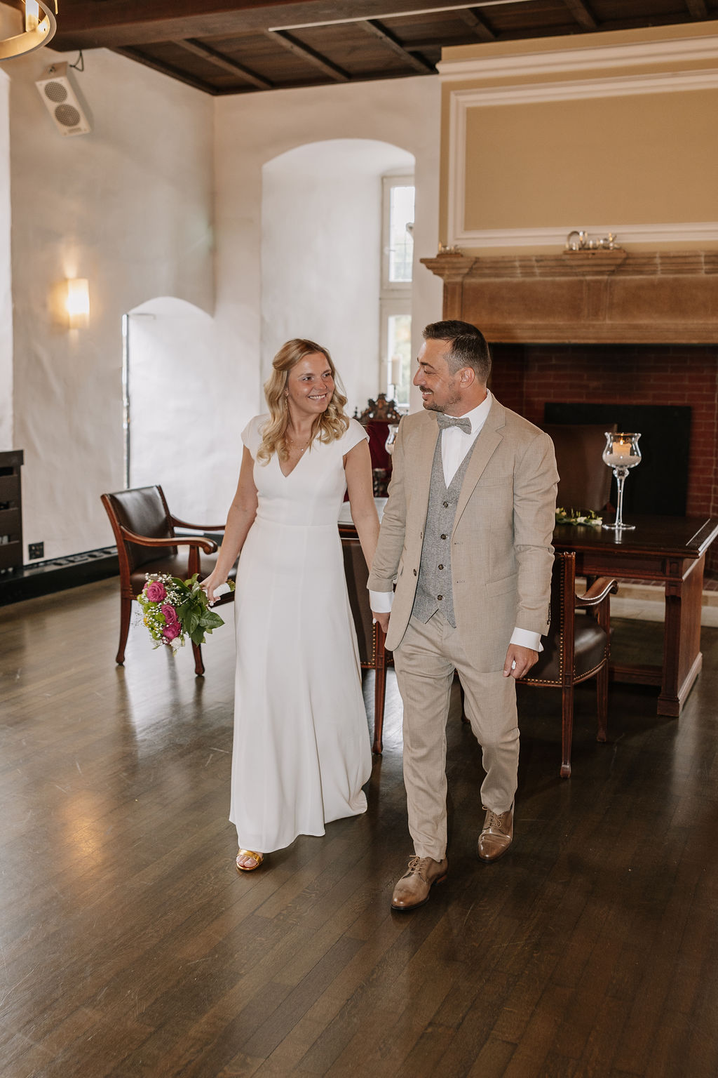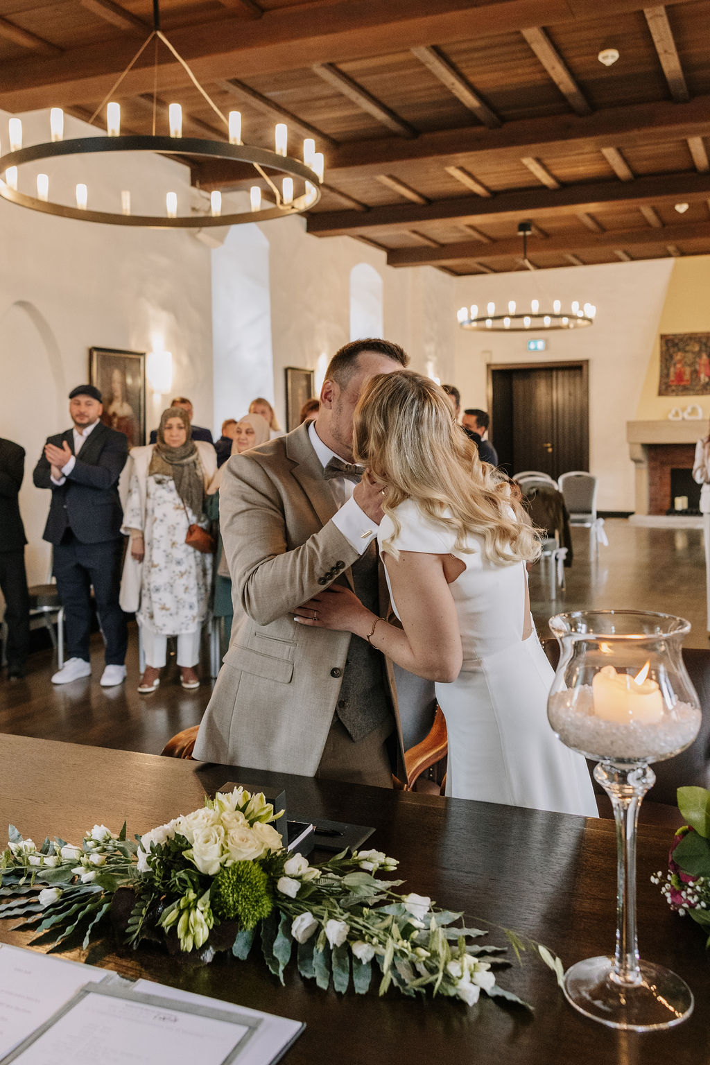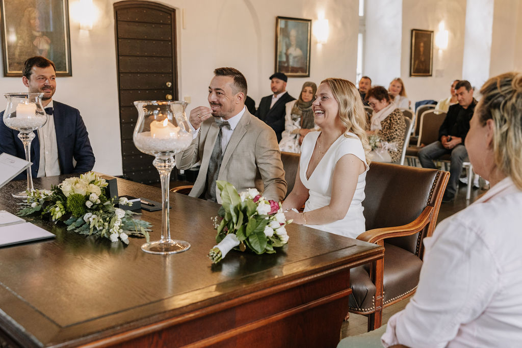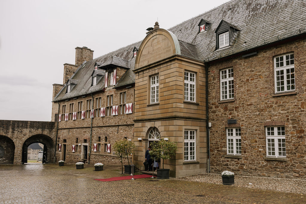 Bereits beim Eintreffen der Gäste wurde spürbar, wie persönlich dieser Tag werden würde. Schloss Broich bietet viel Raum für Begegnungen vor der Trauung, ohne dabei unruhig zu wirken. Die standesamtliche Zeremonie selbst war emotional, herzlich und von einer angenehmen Ruhe getragen. Gerade diese Mischung macht Hochzeiten an diesem Ort so besonders.