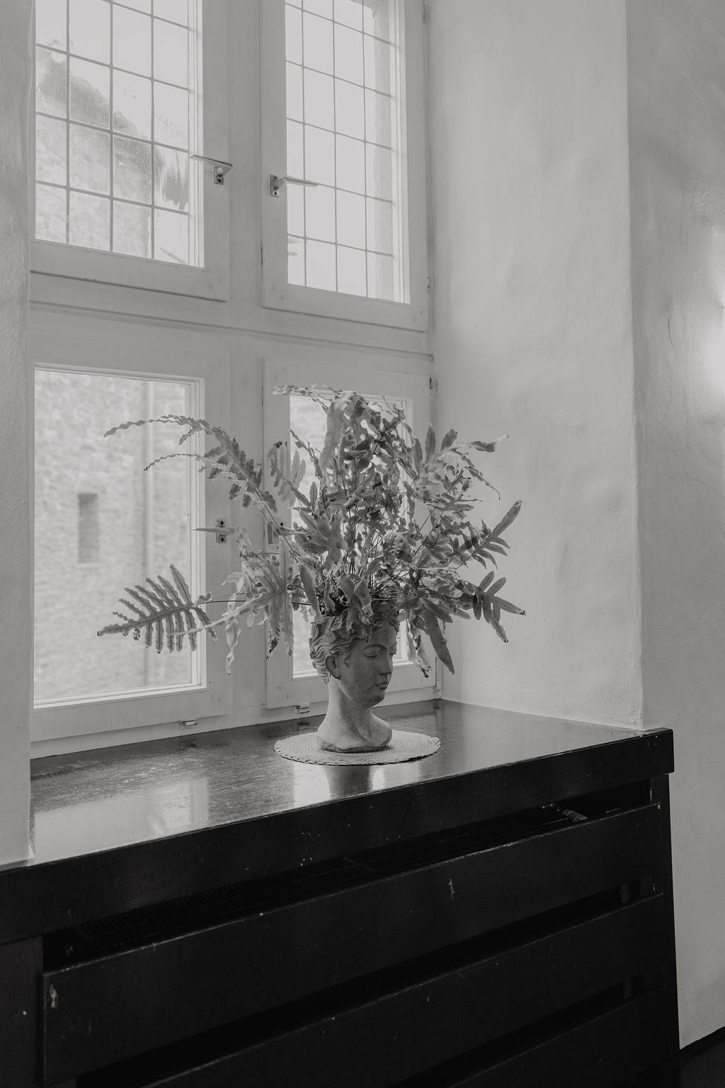 Nach der Trauung zeigte sich das Wetter von seiner wechselhaften Seite. Statt Stress oder Zeitdruck entstand daraus eine wunderbare Alternative: Das Fotoshooting fand in der Stadthalle Mülheim an der Ruhr statt. Eine Location, die sich bei Regen als echter Glücksgriff erwiesen hat.