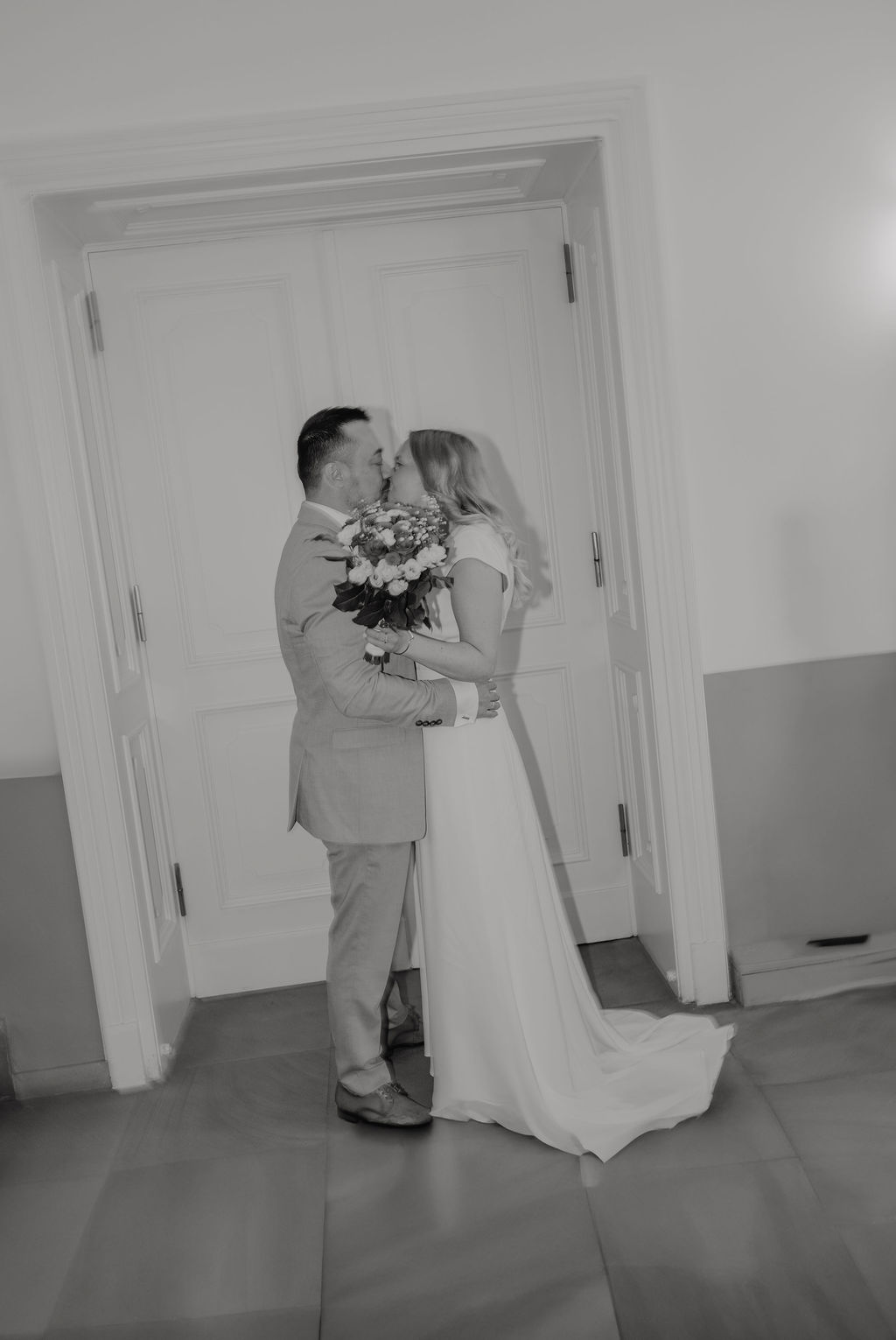 Die klare Architektur, großzügige Fensterflächen und geschützten Bereiche boten ideale Voraussetzungen für elegante, zeitlose Hochzeitsfotos. Gerade bei unbeständigem Wetter zeigt sich, wie wertvoll flexible Locations sind. Cindy und Zennur konnten sich ganz auf den Moment konzentrieren – ruhig, entspannt und ohne Hektik. So entstanden natürliche Bilder, die Nähe, Vertrauen und Leichtigkeit widerspiegeln.