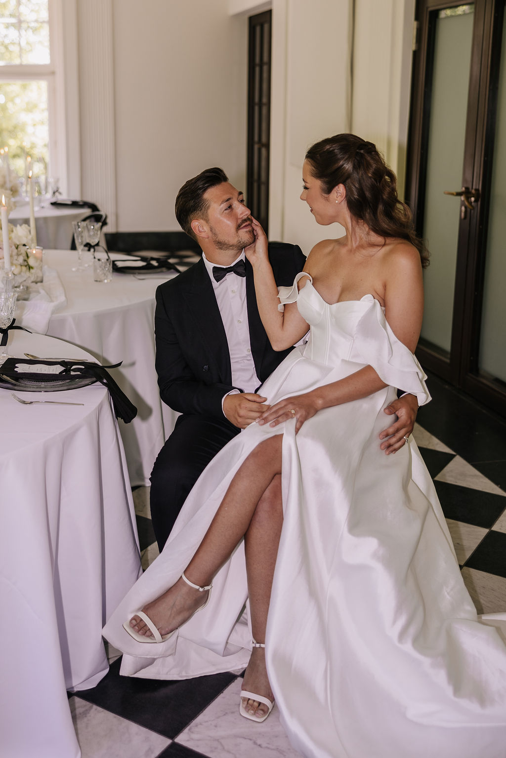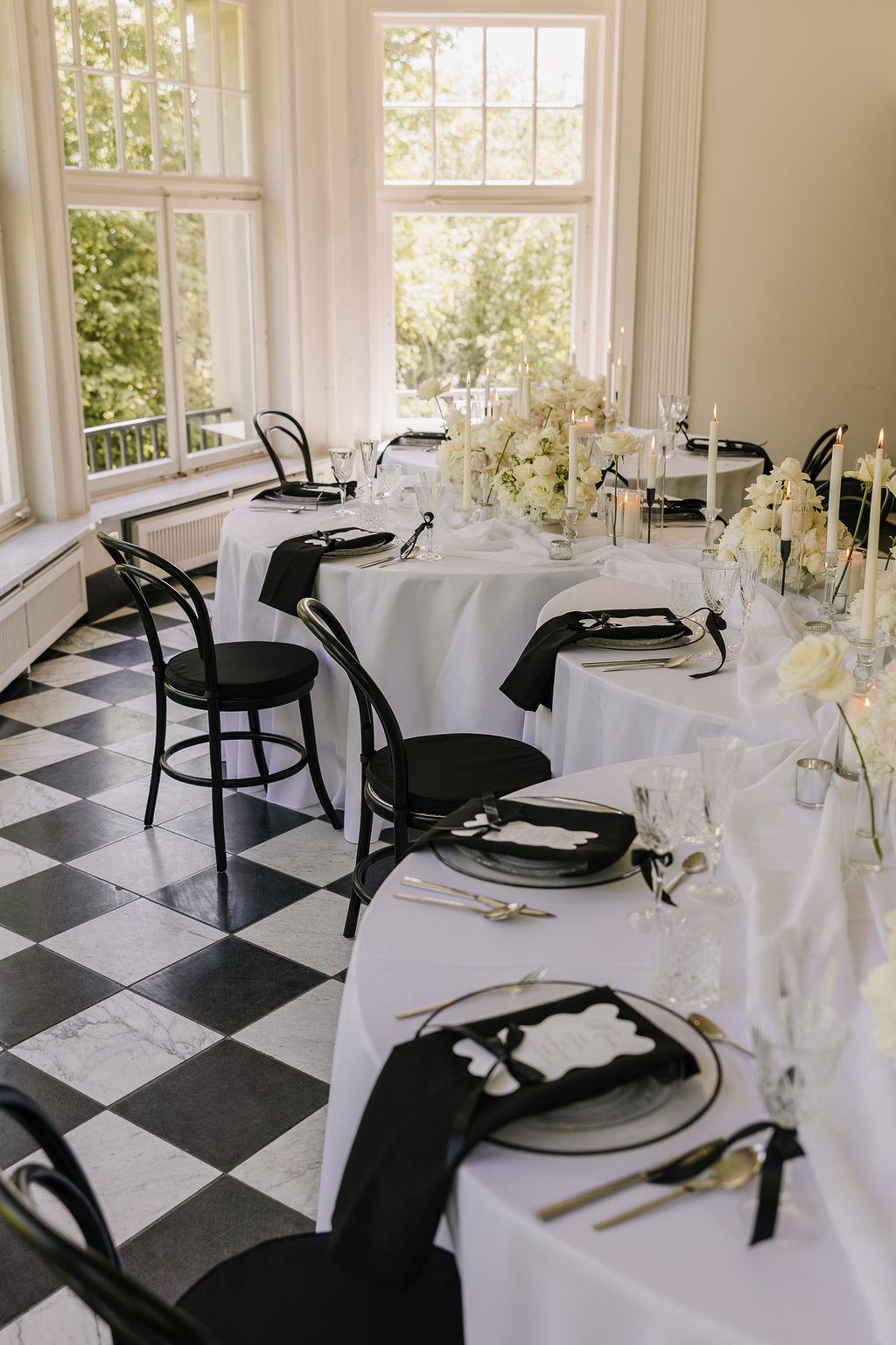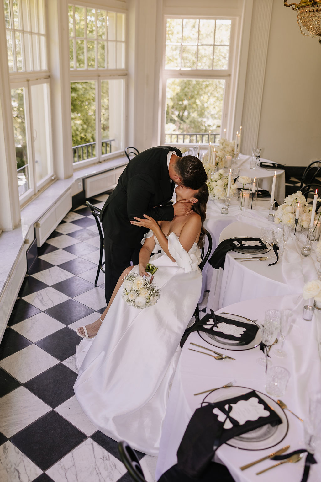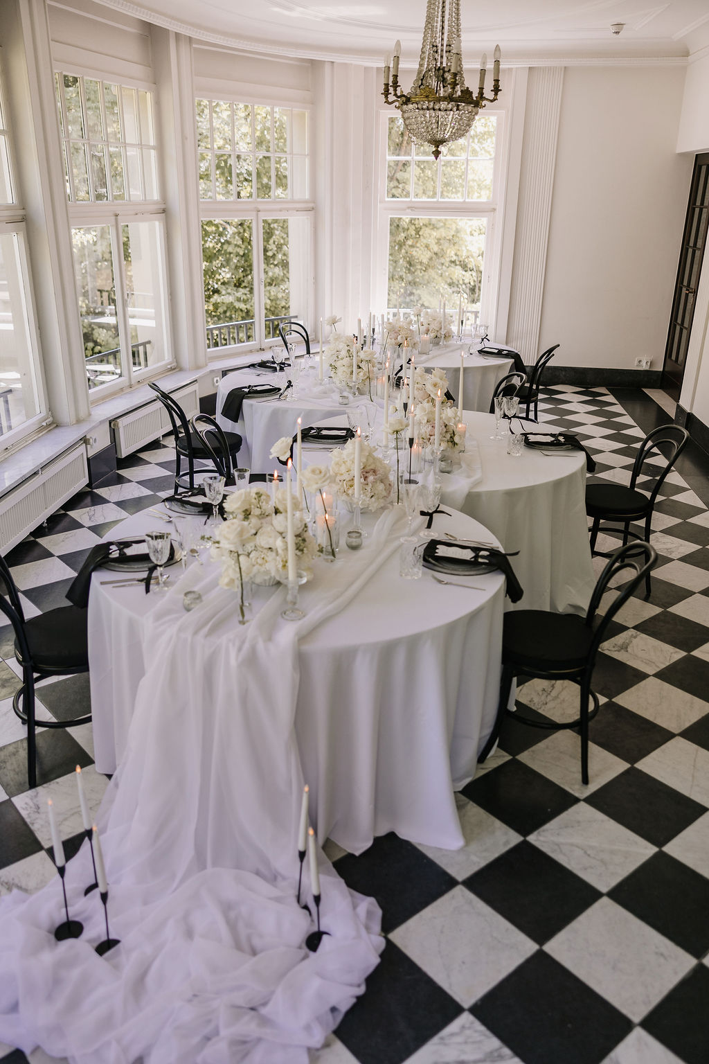 Auch die Innenräume des Schlosses sind vielseitig und hochwertig. Besonders hervorzuheben ist der Raum mit dem markanten Schachbrettmuster aus Fliesen, der durch seine klare Geometrie und Eleganz sofort ins Auge fällt. Er zählt zu den charakteristischsten Räumen der Location und bietet eine außergewöhnliche Bühne für Trauungen oder Empfänge.