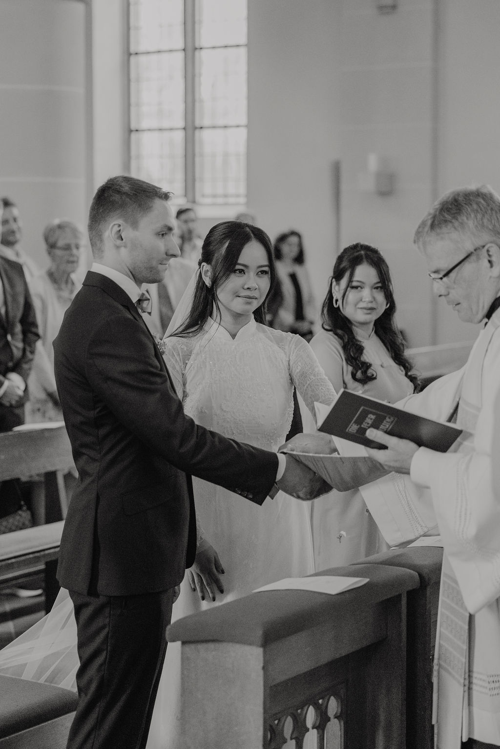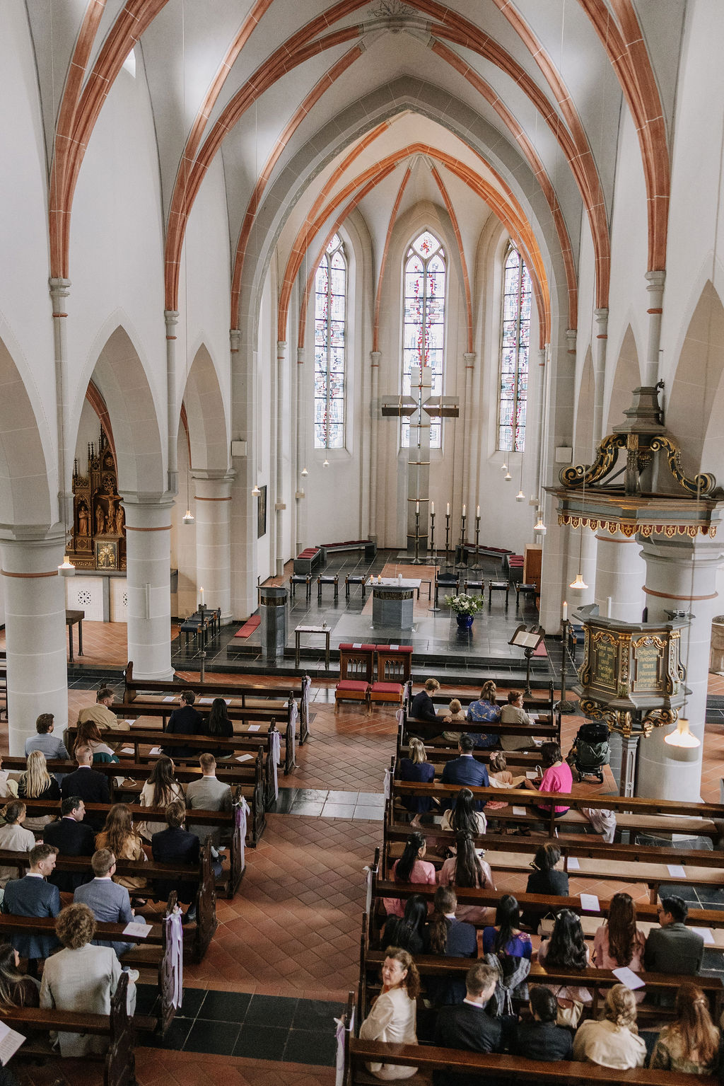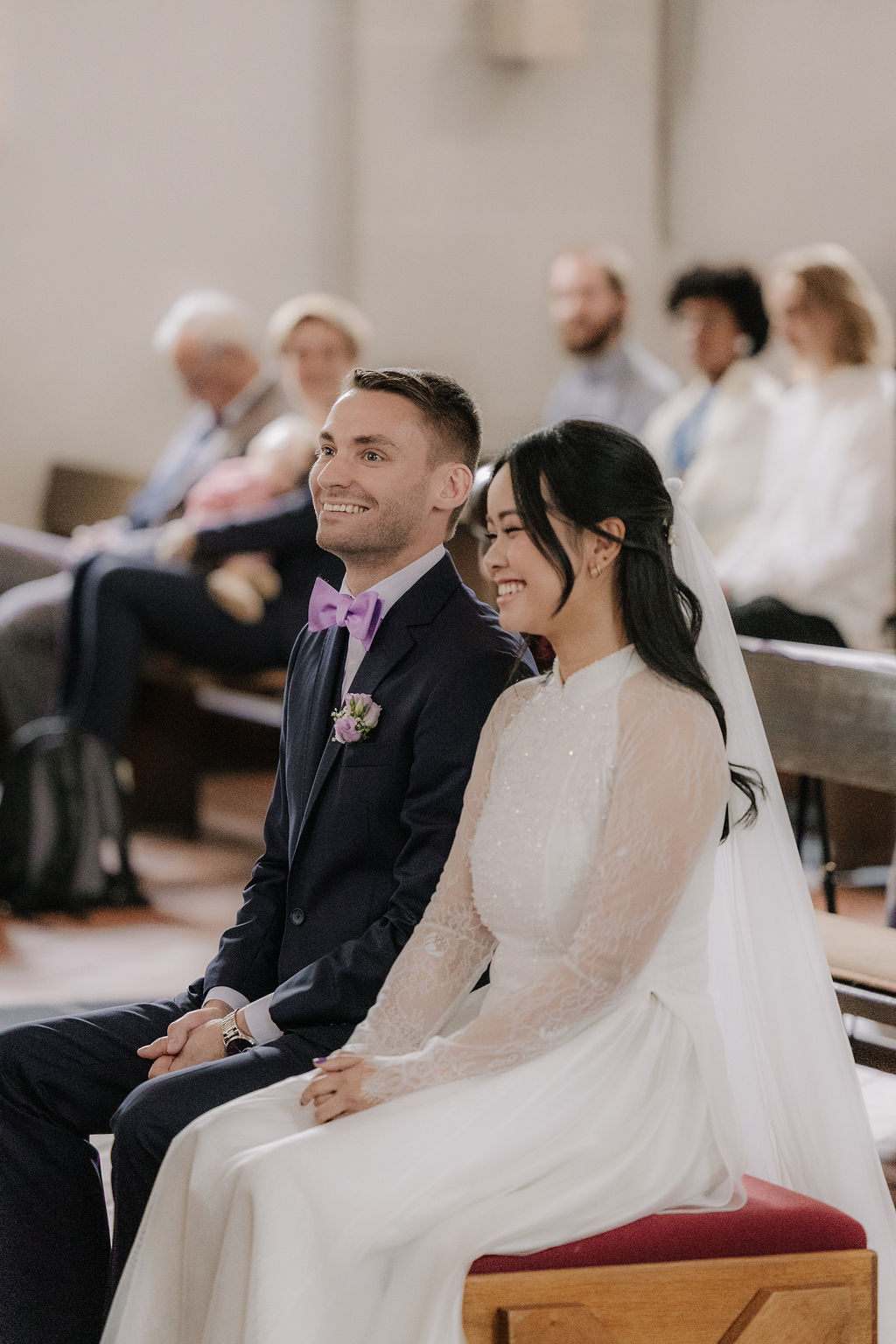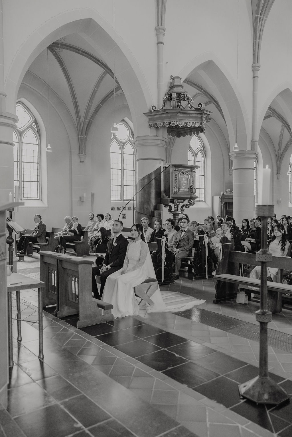 Die Hochzeit von Xuni und Marius begann mit einer kirchlichen Trauung in der St. Nikolaus Kirche in Meerbusch. Die Kirche bietet eine ruhige, helle Atmosphäre und einen würdevollen Rahmen für persönliche Trauungen. Xuni stammt ursprünglich aus Vietnam und lebt seit vielen Jahren in Deutschland – diese Offenheit und Verbundenheit war an diesem Tag spürbar, ohne im Vordergrund zu stehen.