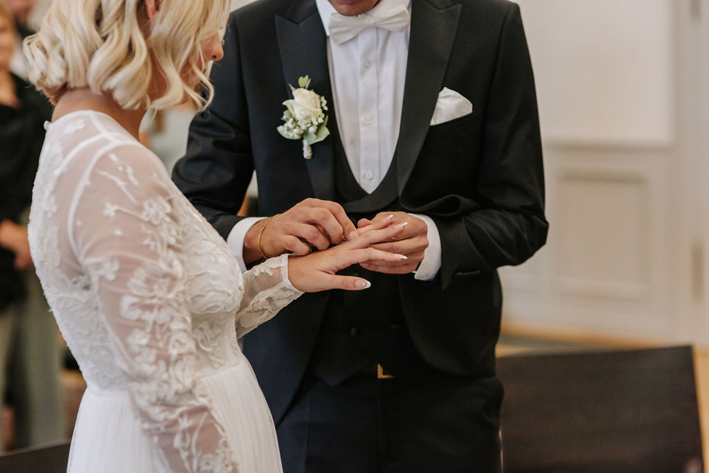 Der Herbst verlieh dem Tag eine besondere Atmosphäre – die Luft war klar, die Farben warm und das Licht weich. Helena und Dennis feierten im kleinen Kreis mit circa 20 engsten Familienmitgliedern und Freunden, was ihrer standesamtlichen Trauung eine persönliche und sehr wertvolle Intensität verlieh.